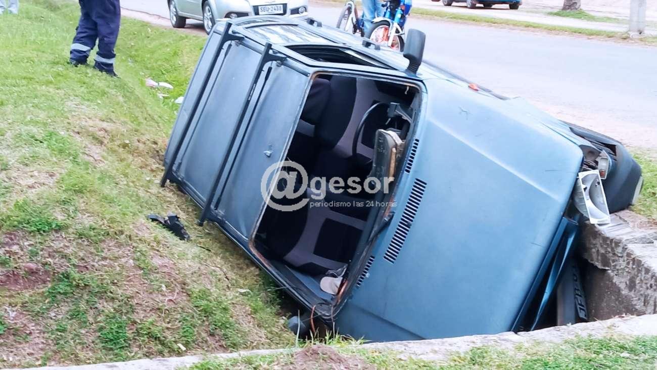 En la tarde de este domingo automóvil matriculado en Fray Bentos con la chapa JFB 6112 cayó en cuneta del parque Guernica a la altura de avda. Zorrilla de San Martín y Cerrito.