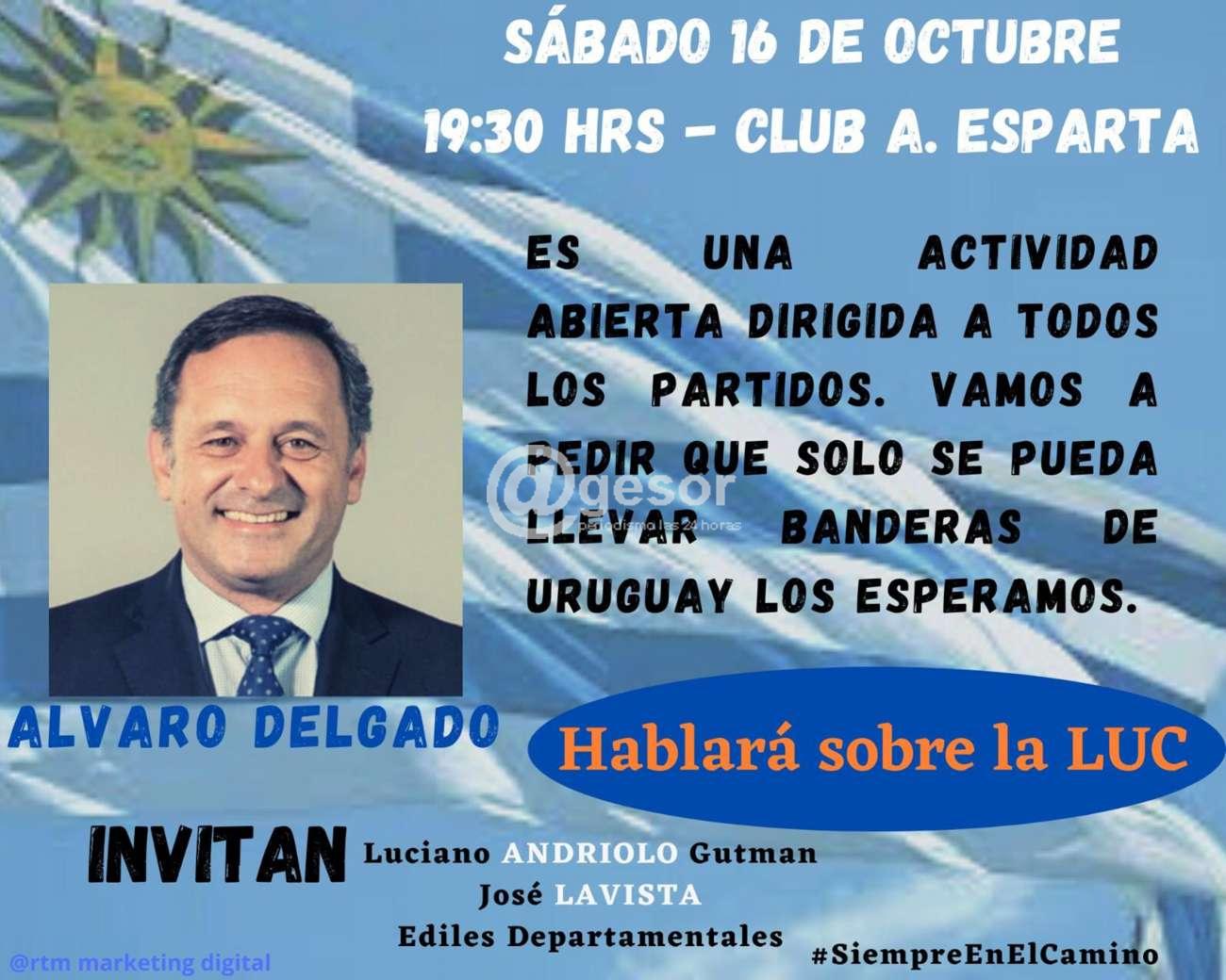 Este sábado 16 a partir de las 19.30 horas en instalaciones del Club Esparta de Mercedes estará presente Alvaro Delgado para exponer sobre la Ley de Urgente Consideración (LUC).