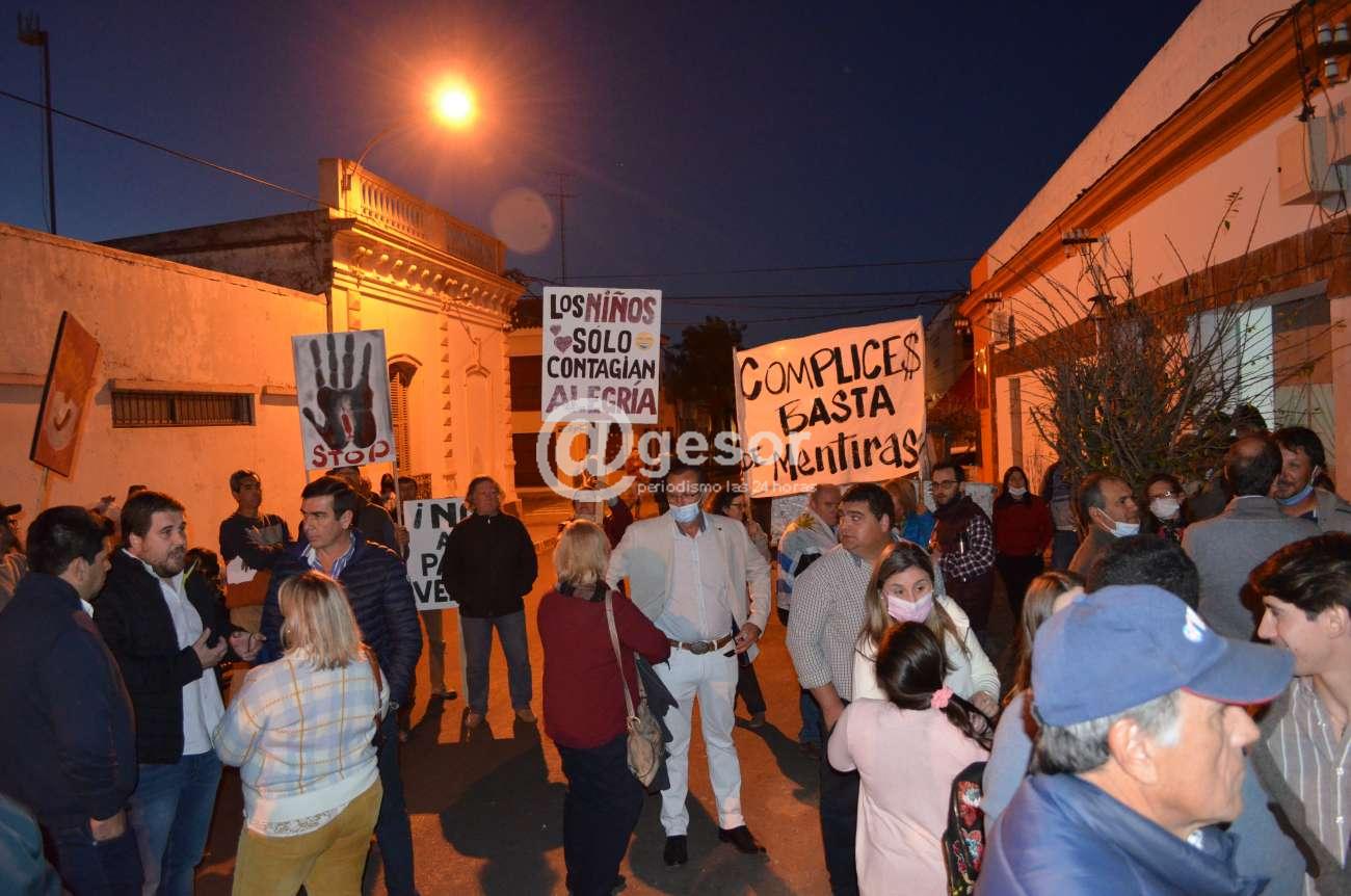 Algunas de  las leyendas que pudieron leerse en esos carteles fueron: “Circovid”.  “Cómplices, basta de mantiras”.  “Los niños solo contagian alegría”.