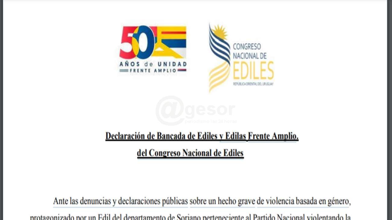 Ante las denuncias y declaraciones públicas sobre un hecho grave de violencia basada en género, protagonizado por un Edil del departamento de Soriano perteneciente al Partido Nacional violentando la privacidad a una colega, durante los días en que se llevó adelante el Congreso Nacional de Ediles celebrado del 22 al 24 de este mes en la ciudad de Paysandú.