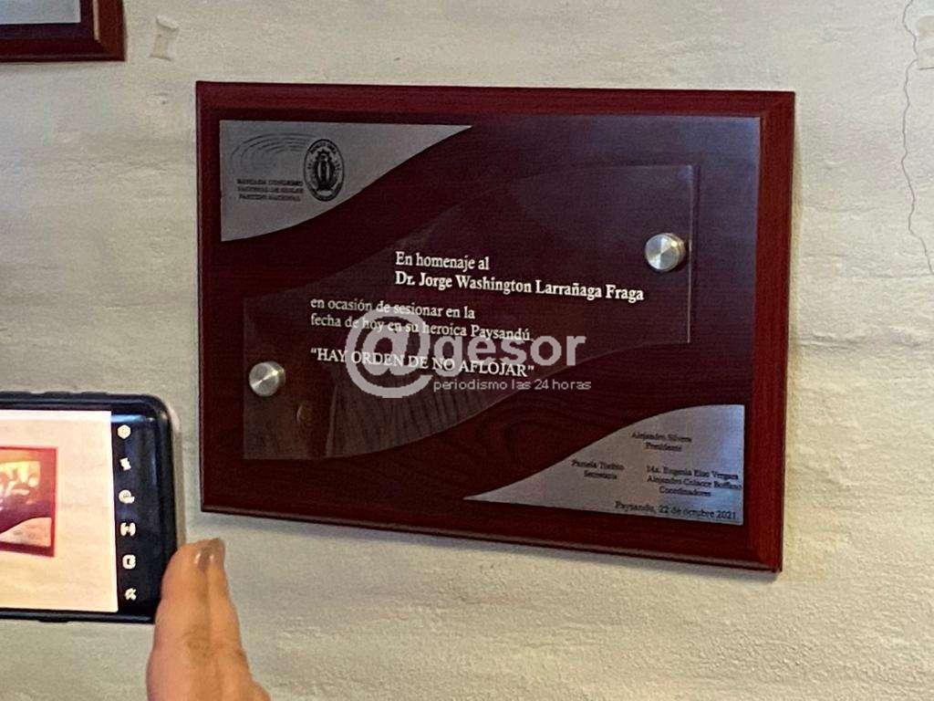 El viernes 22 de octubre, al comienzo del Congreso Nacional de Ediles, se descubrió una placa en honor a Jorge Larrañaga en la Departamental Nacionalista dé Paysandu.