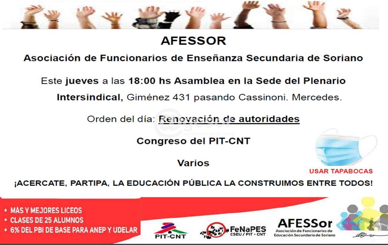 Este jueves a las 18:00 hsAsamblea en la Sede del Plenario Intersindical, Giménez 431 pasando Cassinoni. Mercedes.