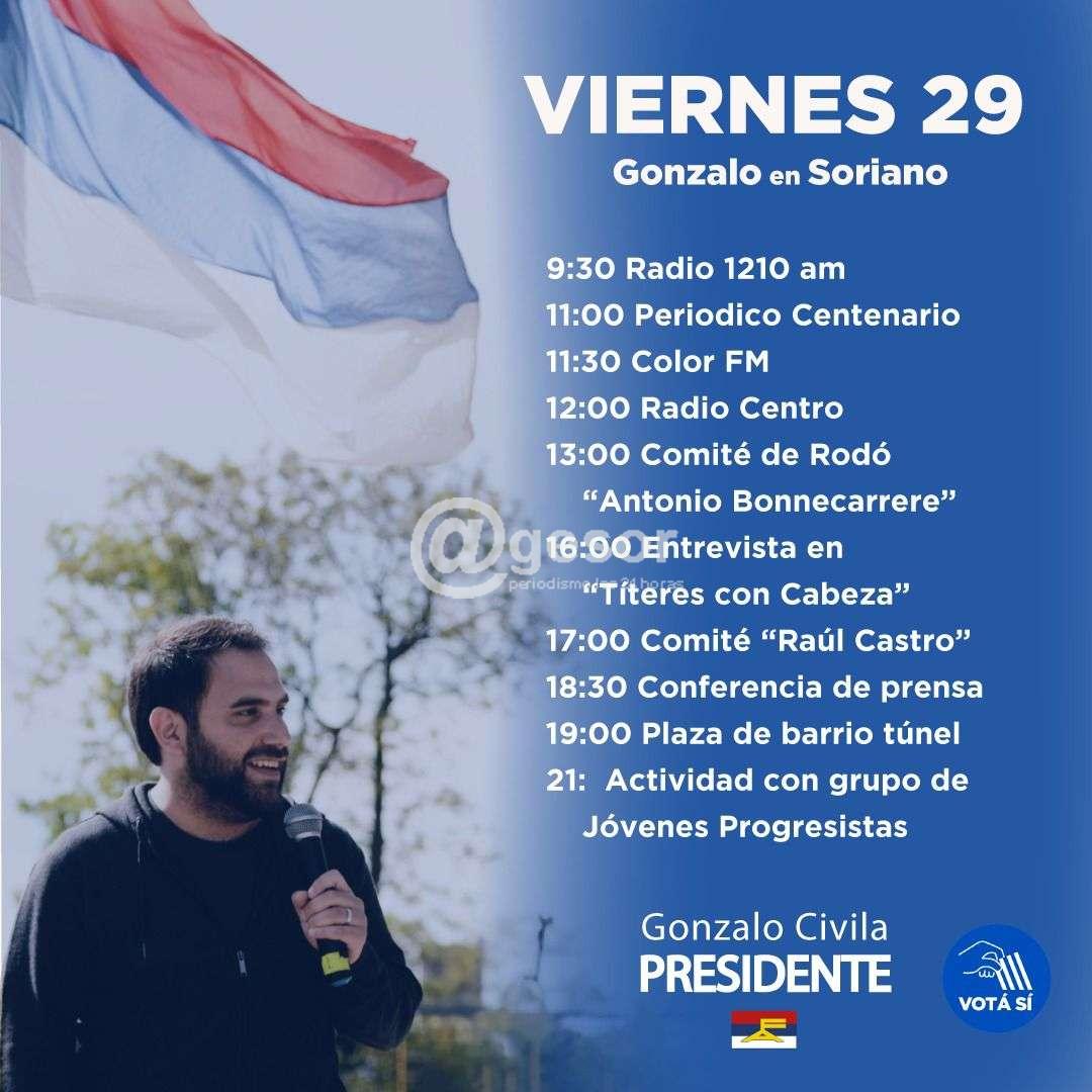 Gonzalo Civila, candidato a presidente del Frente Amplio realiza una gira este viernes por el departamento de Soriano.
