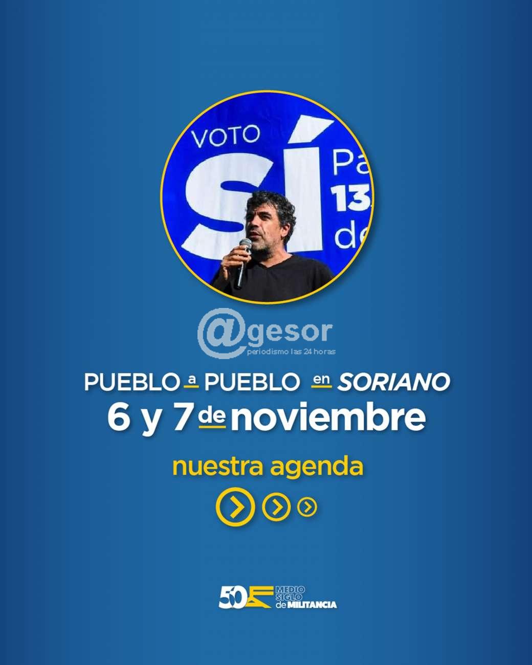 El sábado en la mañana estará en las localidades de Cardona, Santa Catalina y Rodó, mientras que por la tarde lo hará en Palmitas, culminando con una actividad pública en la ciudad de Mercedes, en el espacio ubicado junto a las letras corpóreas de la rambla mercedaria. El domingo mientras tanto, visitará la ciudad de Dolores, culminando la gira por el SÍ, en la localidad de Villa Soriano.