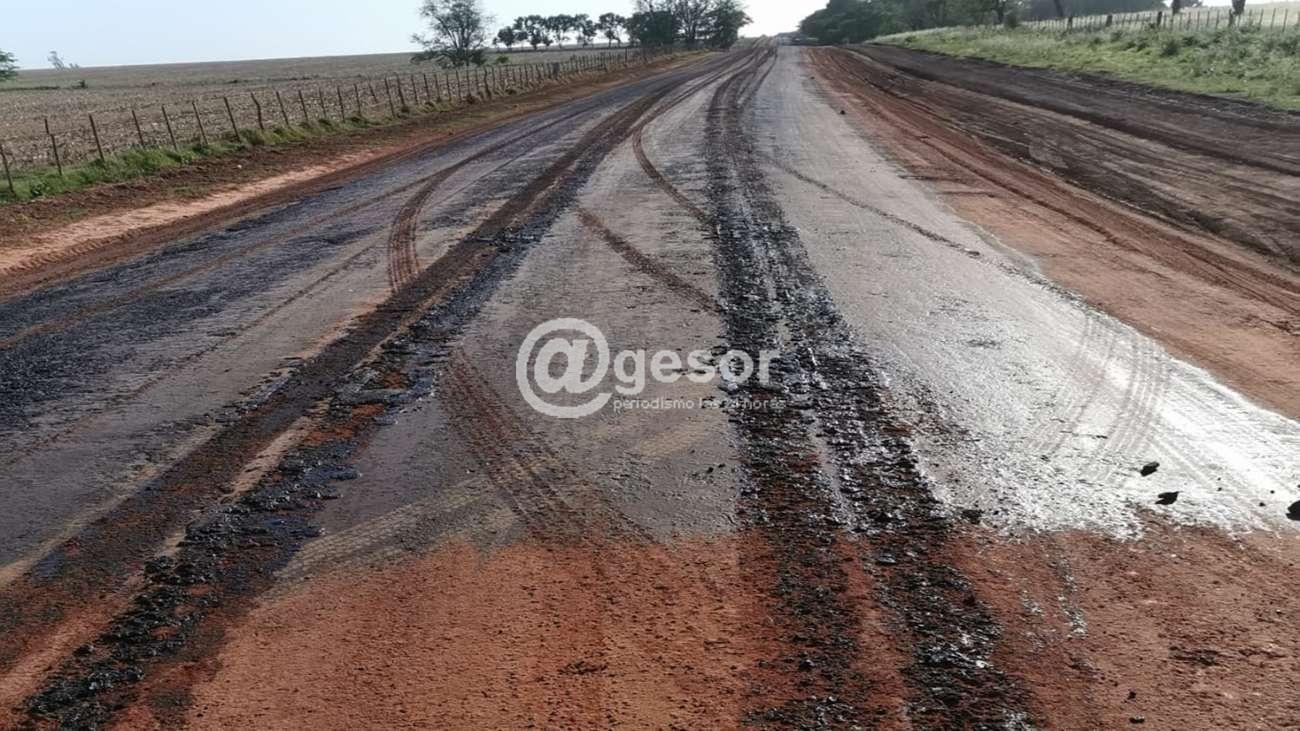 Este lunes al retomar la actividad semanal se constaron daños en la imprimación asfáltica aplicada en un nuevo tramo del camino “Roque P. Gil” que va de ruta 14 hasta pueblo Sacachispas.