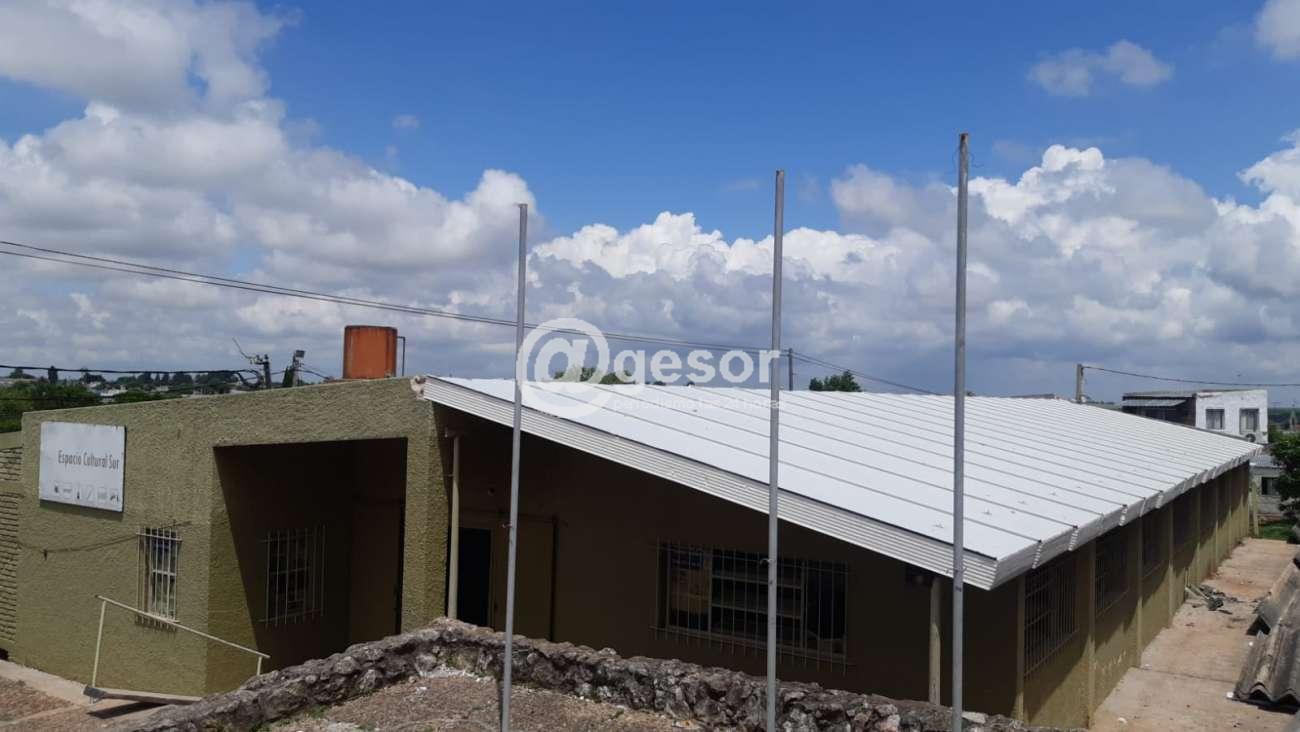 Tal es el caso de los trabajos emprendidos en el Espacio Cultural Sur, situado en José D'Acosta esquina Flores. En este edificio se ha procedido al cambio de techo, retirando la antigua cobertura de chapas de fibro-cemento sustituyéndola por isopanel