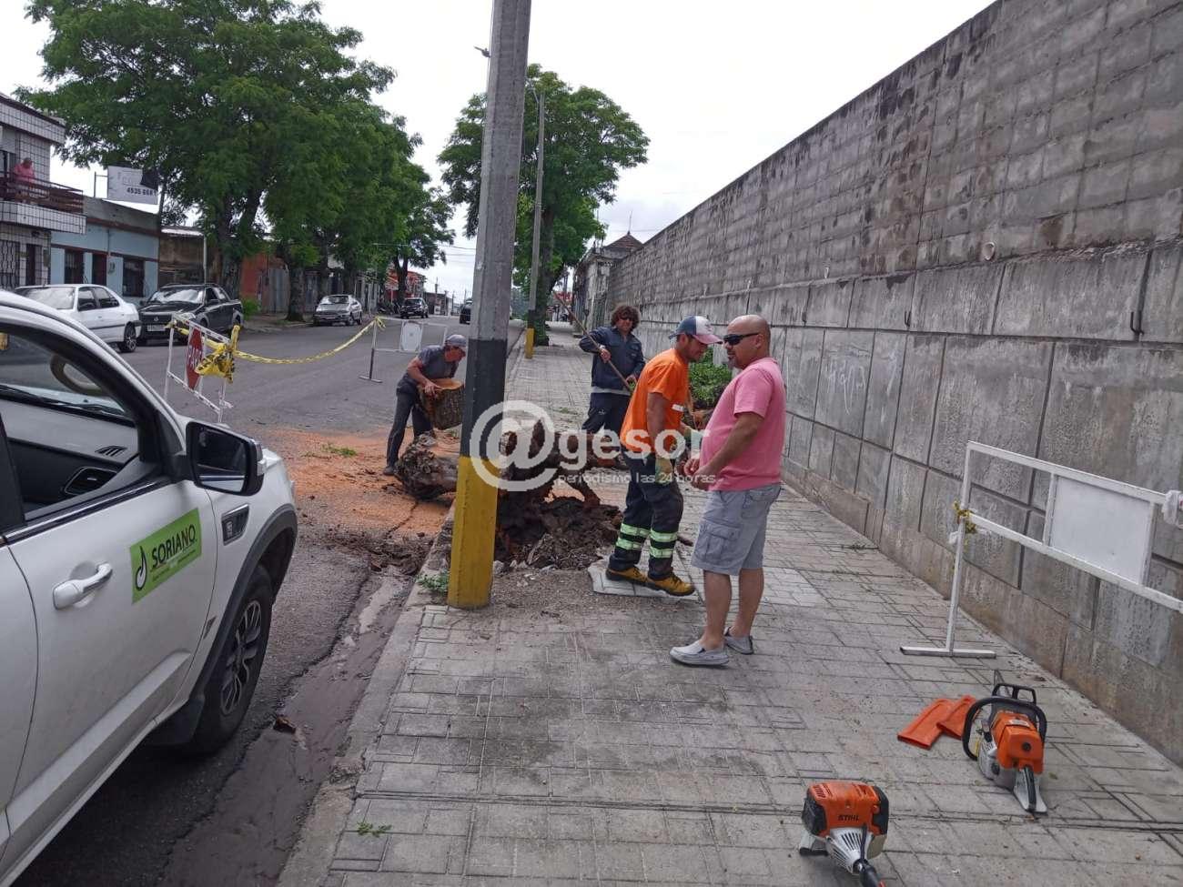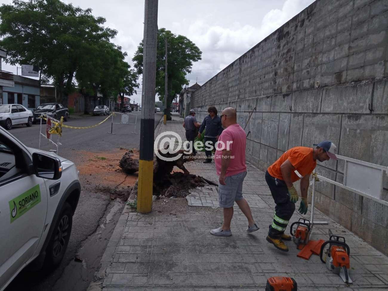 Esta mañana funcionarios de la Intendencia trabajaron para extraer raíces, cortar tronco y ramas y retirar el ejemplar afectado.