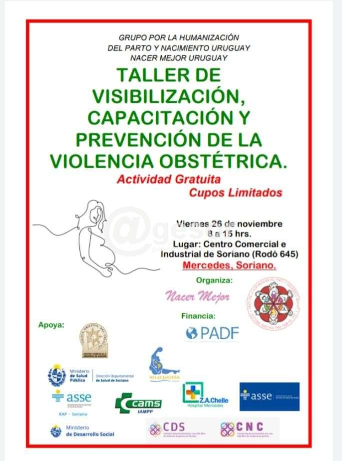 En el marco del 25 de Noviembre Día Internacional de eliminación de la violencia hacia las mujeres la Dirección Departamental de Salud  junto   a la Comisión Departamental por una vida libre de violencia hacia las mujeres  organiza este taller  acerca de la  Visibilización, Capacitación y Prevención de la Violencia Obstétrica.