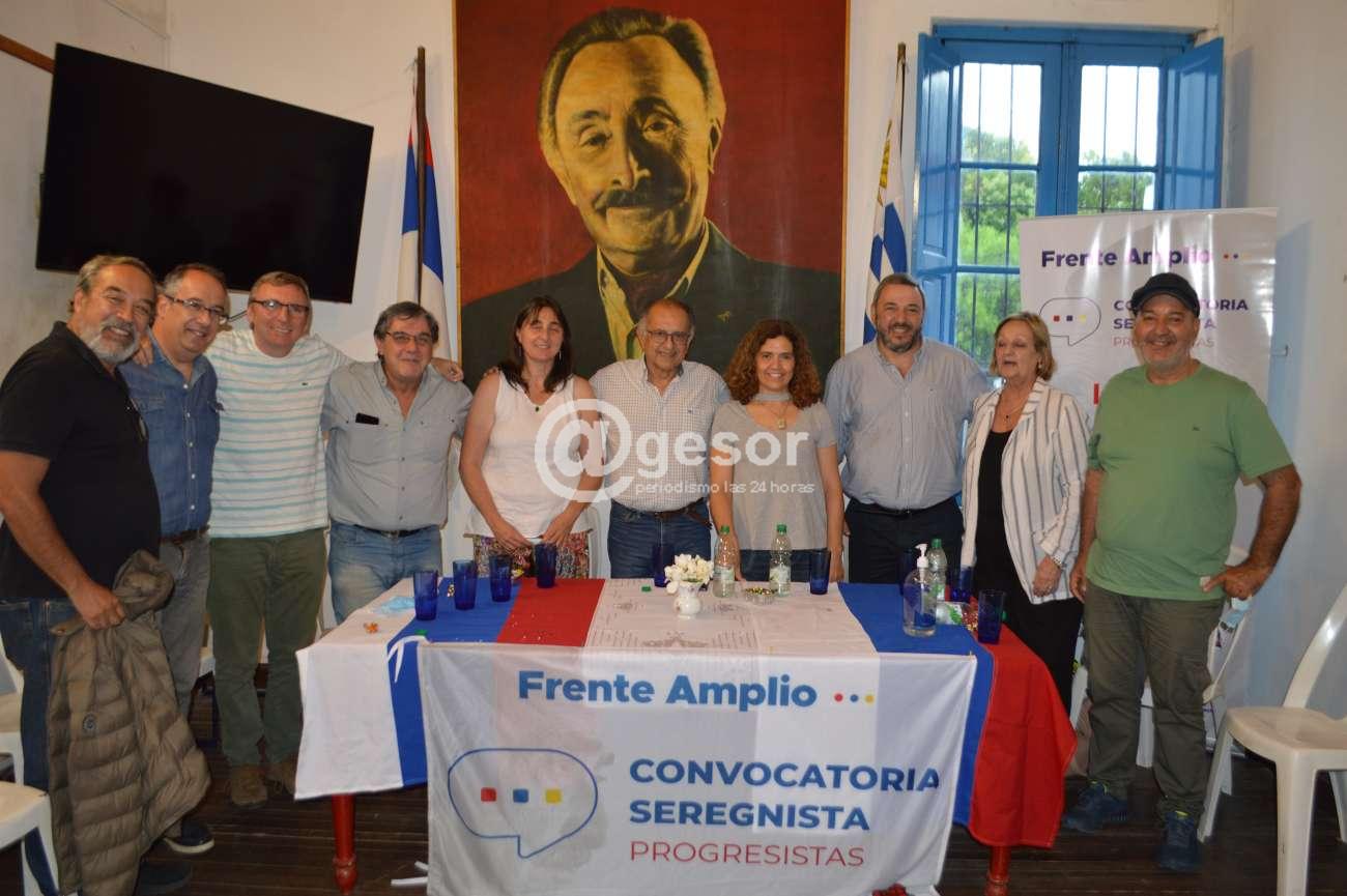 Tras la bienvenida del referente local Dr. Julio Guastavino acompañado de la candidata departamental Carla Di Stasio, y el Presidente del Frente Amplio Roque Arregui, fueron presentándose Dr. Daoiz Uriarte (Plataforma), Senador José Carlos Mahía (Asamblea Uruguay), Jorge “El Chileno” Rodríguez (Presidente del PDC), Diputada suplente Sylvia Ibarguren (Frente Río Negro), Senador Ec. Mario Bergara (Fuerza Renovadora), Senadora Liliam Kechichian (Alianza Progresista) y el delegado por Uruguay en CARP Gonzalo Reboledo (deFrente), figuras de diferentes sectores y agrupaciones que convergen en esta Convocatoria.