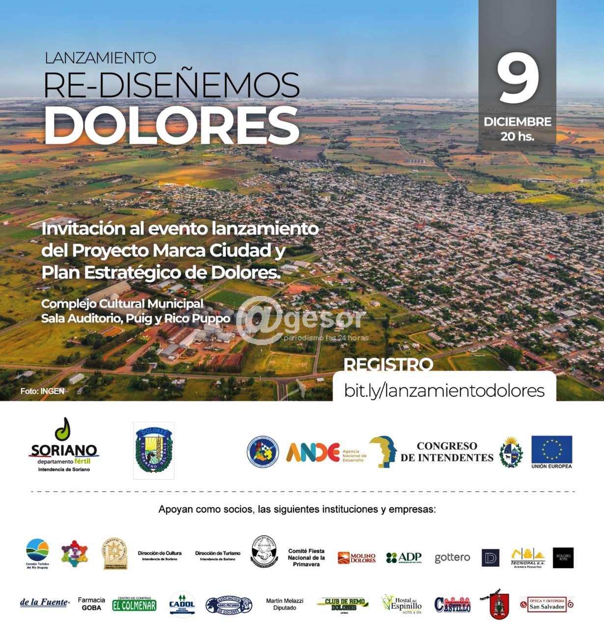 Este jueves 9 de diciembre a las 20.00 horas en el Complejo Cultural Municipal, sala auditorio de Dolores, ubicado en Puig y Rico Puppo estará realizándose el lanzamiento de Re-diseñemos Dolores, evento correspondiente a la presentación del Proyecto Marca Ciudad y Plan estratégico de Dolores