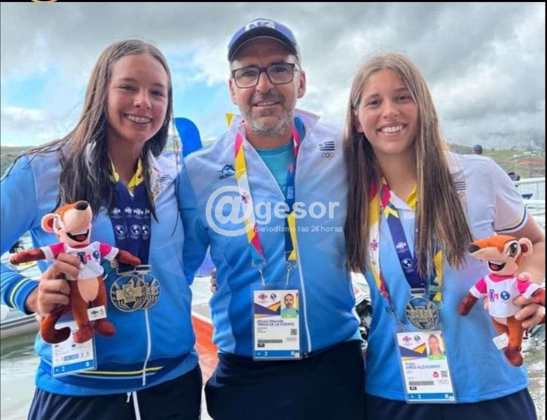 Mientras tanto que el doble par de Ynela Aires y Cloe Callorda logró medalla de plata, bote representativo del Club Remeros Mercedes..