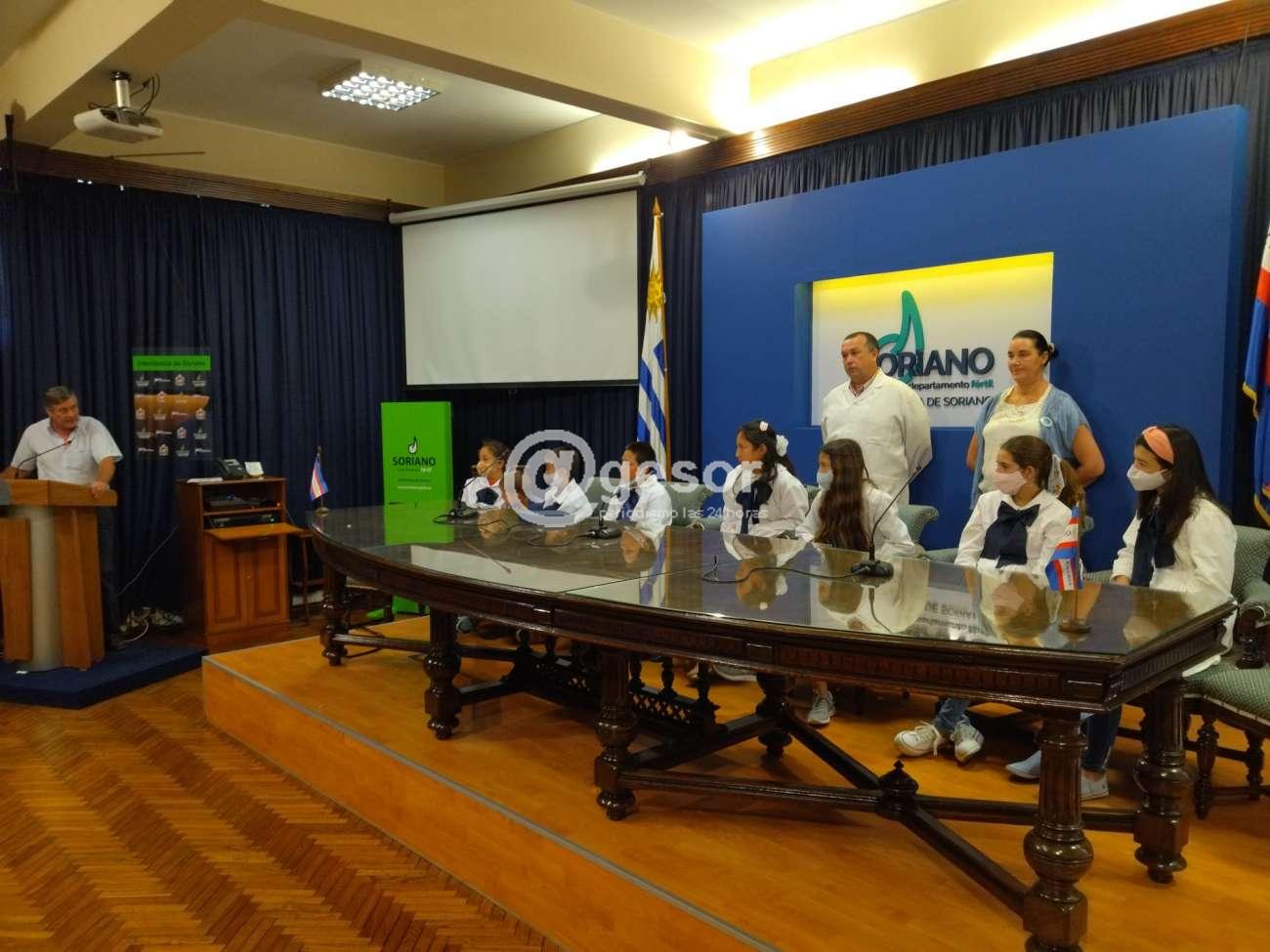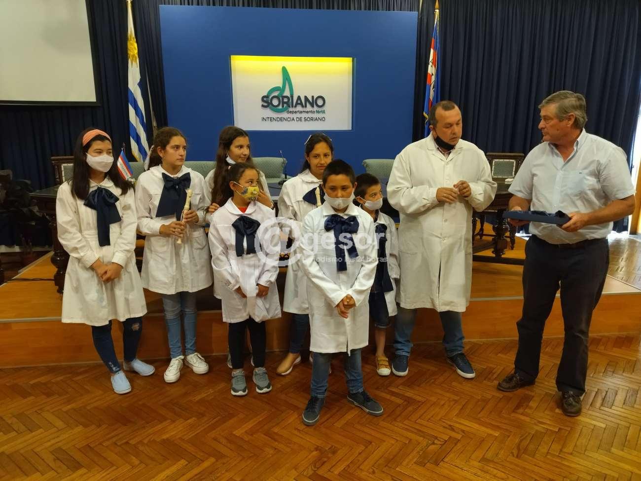 En una ceremonia encabezada por el intendente Guillermo Besozzi, desarrollada en el salón “Eduardo V. Haedo” del Palacio Municipal, se les entregó una plaqueta que testimonia el esfuerzo y los logros de este grupo de escolares del interior rural de nuestro departamento.