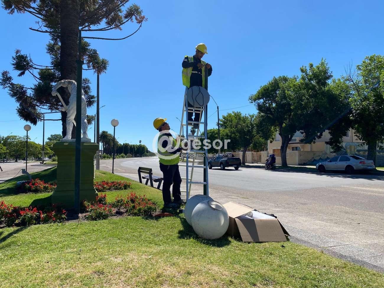 Los trabajos están a cargo de la empresa Nórdica S.A., y se incluyen en el Plan de Eficiencia Energética de la comuna para mejoras las redes de alumbrado público en el departamento.
