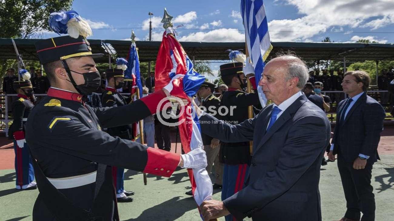 Por su parte, el director de la Escuela Militar coronel Luis Prantl dijo en su discurso que es «nuestra escuela, un instituto de nivel terciario reconocido por el Ministerio de Educación y Cultura, aportando a los valientes jóvenes que optan por este particular modo de vida que es la carrera de las armas, una educación integral cimentada en asignaturas profesionales, científico-técnicas y educación física, para lograr una sólida formación superior basada en firmes valores y moral ciudadana. En referencia al nivel de nuestros oficiales en comparación con las más adelantadas naciones como anhelaba el presidente de la República el día de creación, sobran los ejemplos en intercambios, pasantías, cursos y misiones operativas en recónditos lugares del mundo, en que nuestros oficiales han dejado bien en alto el prestigio de nuestra bandera», indicó.