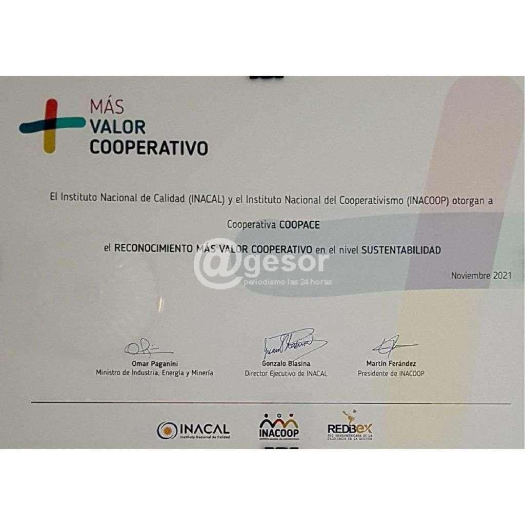 Coopace fue distinguido con el Premio "Más Valor Cooperativo" en nivel Sustentabilidad.