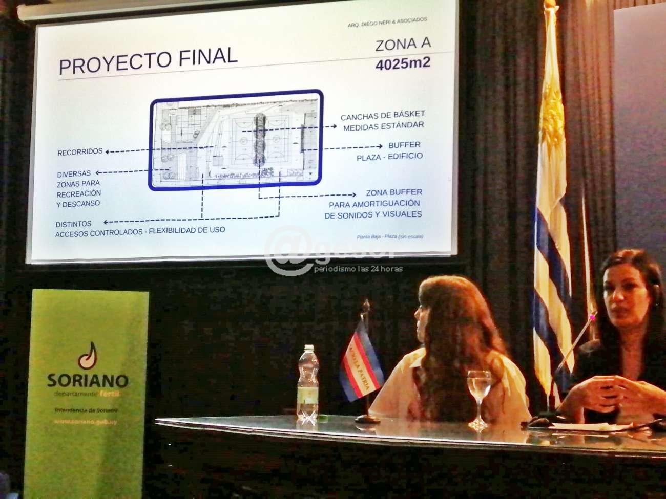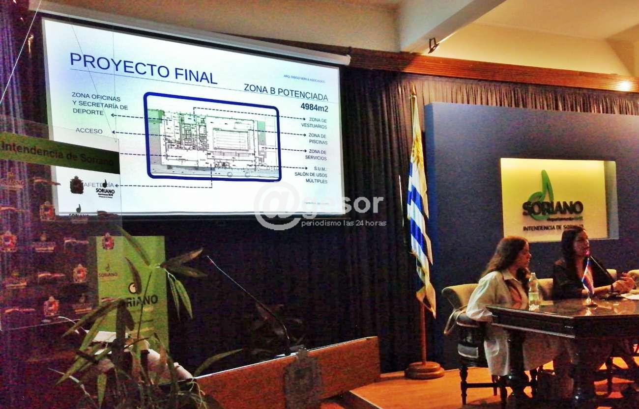En el salón de actos "Eduardo Víctor Haedo" de la Intendencia de Soriano, se procedió a la presentación del proyecto reformulado del Complejo Deportivo Mercedes (ex – Arenas Soriano).