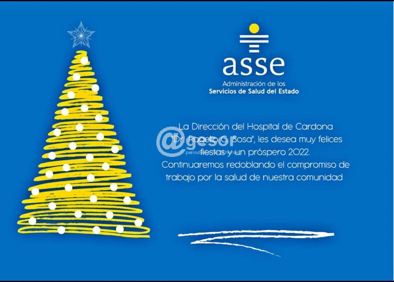La Dirección del Hospital de Cardona "Dr. Rogelio C. Sosa", les desea muy felices fiestas y un próspero 2022.
