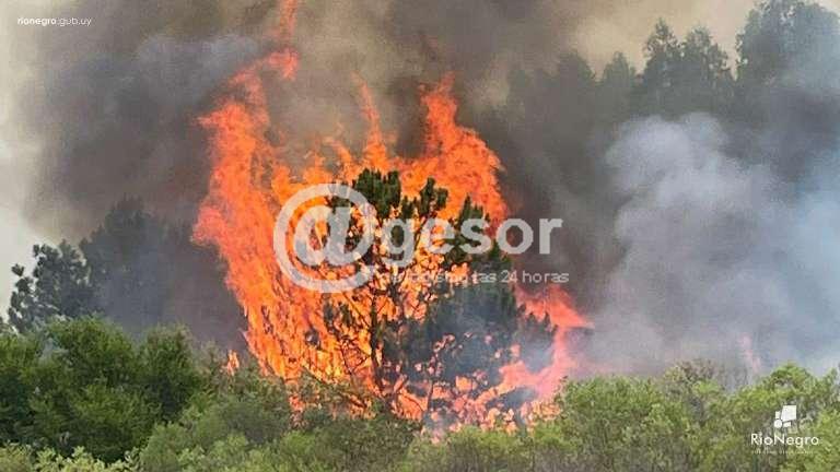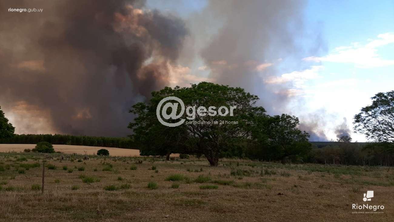 La Intendencia de Río Negro informó sobre el trabajo desplegado en el apoyo brindado a Bomberos en el control “de un incendio de proporciones importante en cercanías de la localidad de Algorta.
