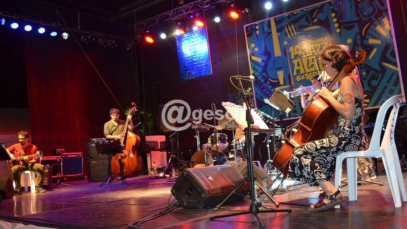Desde Argentina llegó Jessica Estigarribia Sexteto. El segundo número de la primera noche del Jazz a la Calle 2020 estuvo a cargo de este grupo integrado por Jessica Estigarribia en Cello y a cargo de la composición, e integrado pro Janette Nerezian (trompeta), Juan Klas (flauta y saxo tenor), Diego Fapalde (guitarra eléctrica). Omar Méndez (batería), Ignacio Szulga (Contrabajo). Y con un repertorio propio compuesto por Jessica Estigarribia , en una propuesta que fue muy disfrutada por el público.