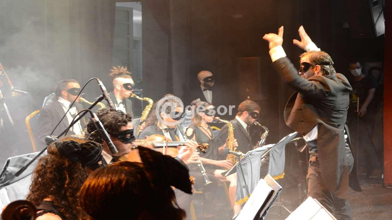 La Orquesta de las mil melodías tuvo a su cargo el cierre del 14° Encuentro Internacional de Músicos Jazz a la Calle. Un cierre de festival que tuvo al público de pie, bailando y aplaudiendo a esta particular formación musical, compuesta por 33 músicos que además de ejecutar sus instrumentos también bailaron y actuaron al ritmo de la música. Su director, Andrés Lazaroff, o como prefiere presentarse al frente de la Orquesta, Djinnwc Drago, voz principal de El cuarteto del amor es, podría decirse, un especialista en rescatar composiciones olvidadas de la música popular. En El cuarteto del amor recurre a las Habaneras, Foxtrot, Valses y otros ritmos y formas interpretativas caídas en desuso. Ahora en La Orquesta de las mil melodías, junto a una sólida agrupación encaran un espectáculo que no da respiro al auditorio por el frenesí y la alegría desplegada con un repertorio del jazz tradicional de las grandes bandas y algunas canciones centroamericanas caídas en el olvido y que aparecen como toda una novedad musical.