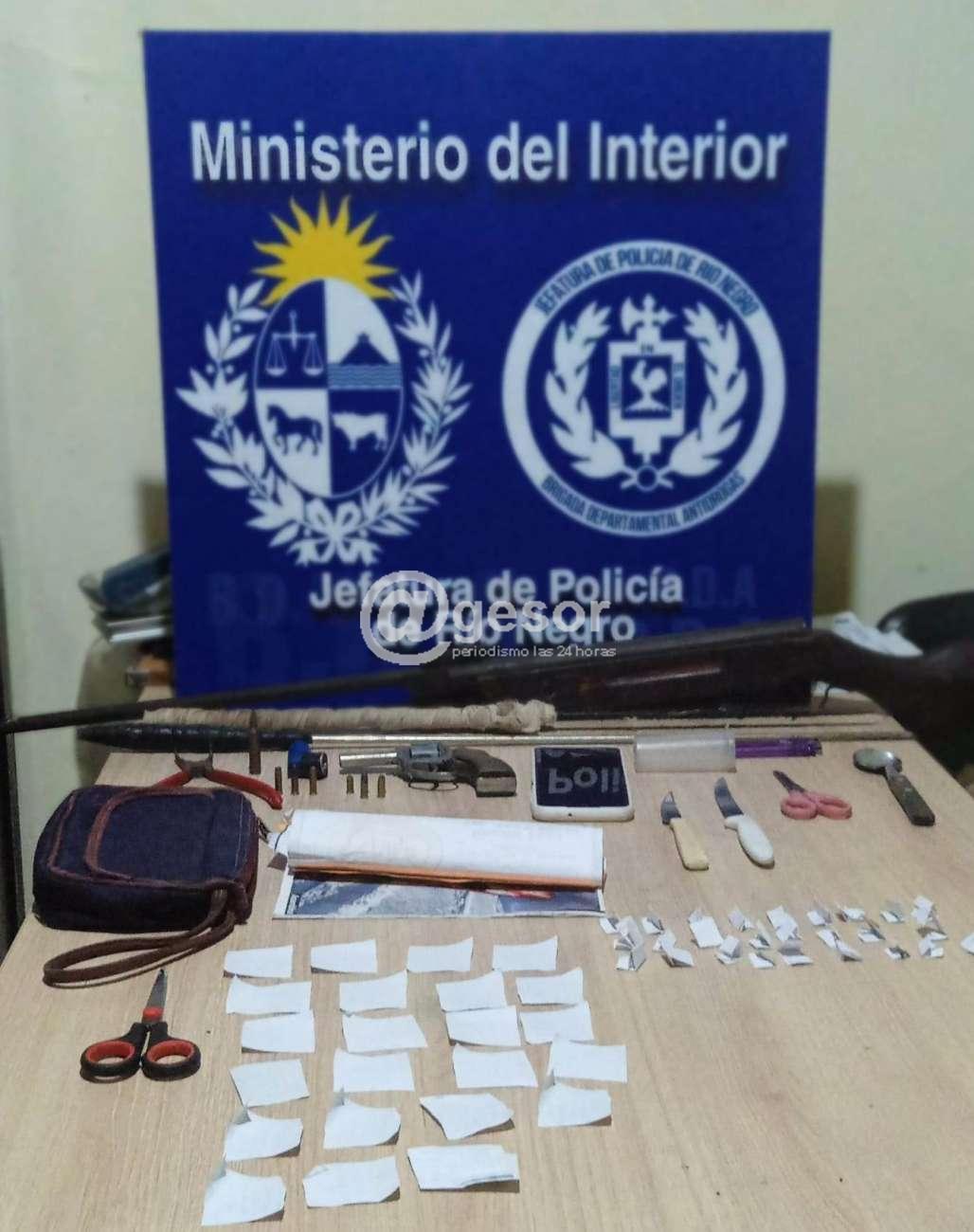 Al ingresar a una de las viviendas se detuvo a dos consumidores y se les incautó la droga adquirida. En la otra casa fue incautado un revólver calibre 22 corto con cinco municiones. A su vez se incautó una chumbera, tres municiones calibre 22, dos puntas tipo carcelarias, dos chuchillos, y un celular, entre otros objetos. Asimismo se detuvo a las tres personas investigadas.