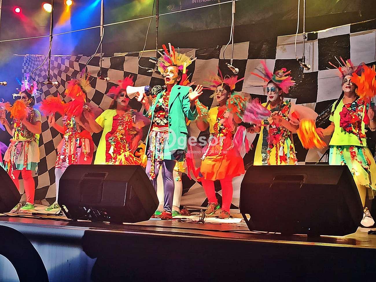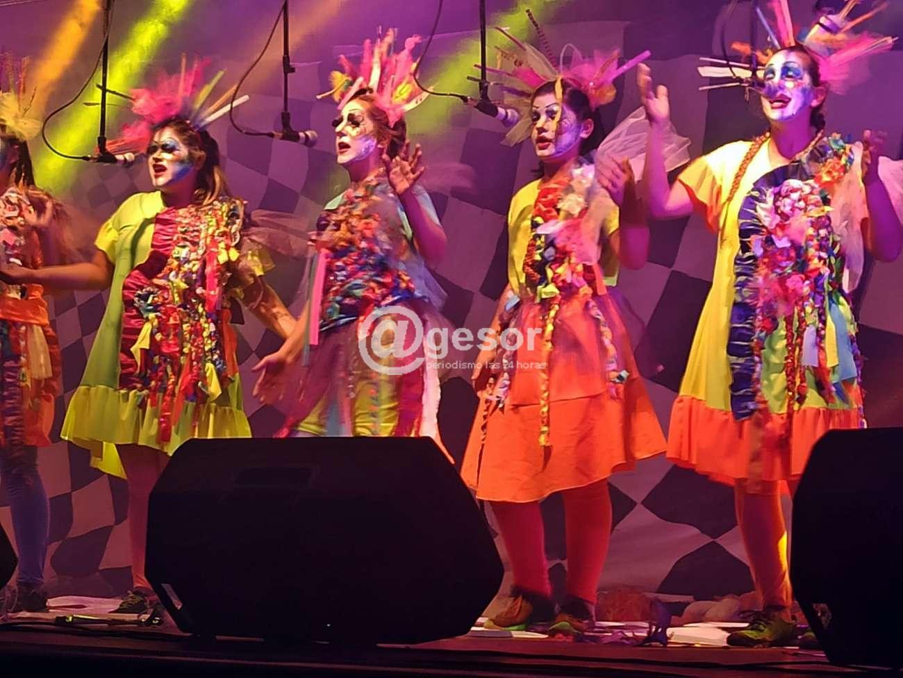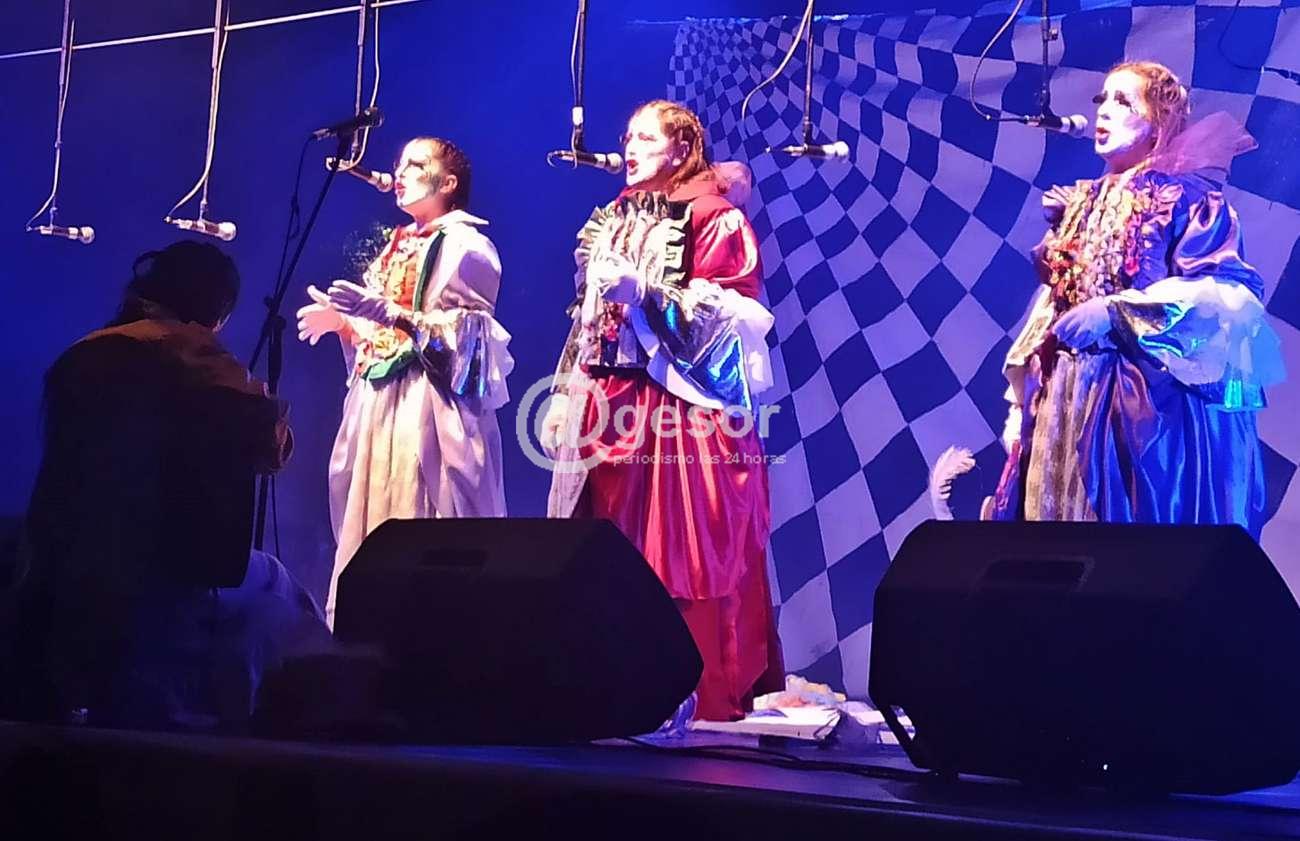 Eran las 21.05 cuando comenzó a cantar, tras la presentación de rigor realizada por José María Romero y Silvana Martínez, la murga mercedaria ¨La Dama Juana¨, una agrupación que tiene como particularidad que salvo su director escénico y los tres integrantes de la batería, el resto de los componentes son mujeres, por lo que la expectativa que había generado en la apertura del Concurso, se trasladó hasta anoche y cuando culminó las cumplió y con creces, superándolas nos animamos a decir, siendo despedida por el público de pie, aplaudiéndolas por lo que entregaron en el escenario y muy especialmente por el valor artístico sí, pero más que nada por el mensaje explícito que dejaron, lo que expresaron sobre el escenario, ese ¨cachetazo¨ de realidad, ese tremendo golpe al mentón que le propinaron al machismo en general, pero esencialmente identificado con el Carnaval, con el murguero y el actuar histórico de éste, pero además dicho con un lenguaje cotidiano que todos reconocieron y que llevó a que esa bajada del escenario se sintiera con se sintió por parte de estas mujeres y los hombres que las acompañaron arriba de lass tablas pero también por quienes crearon junto a ellas el espectáculo y las fueron a buscar o las esperaron a un costado para fundirse en un fuerta abrazo y beso de reconocimiento por lo hecho.