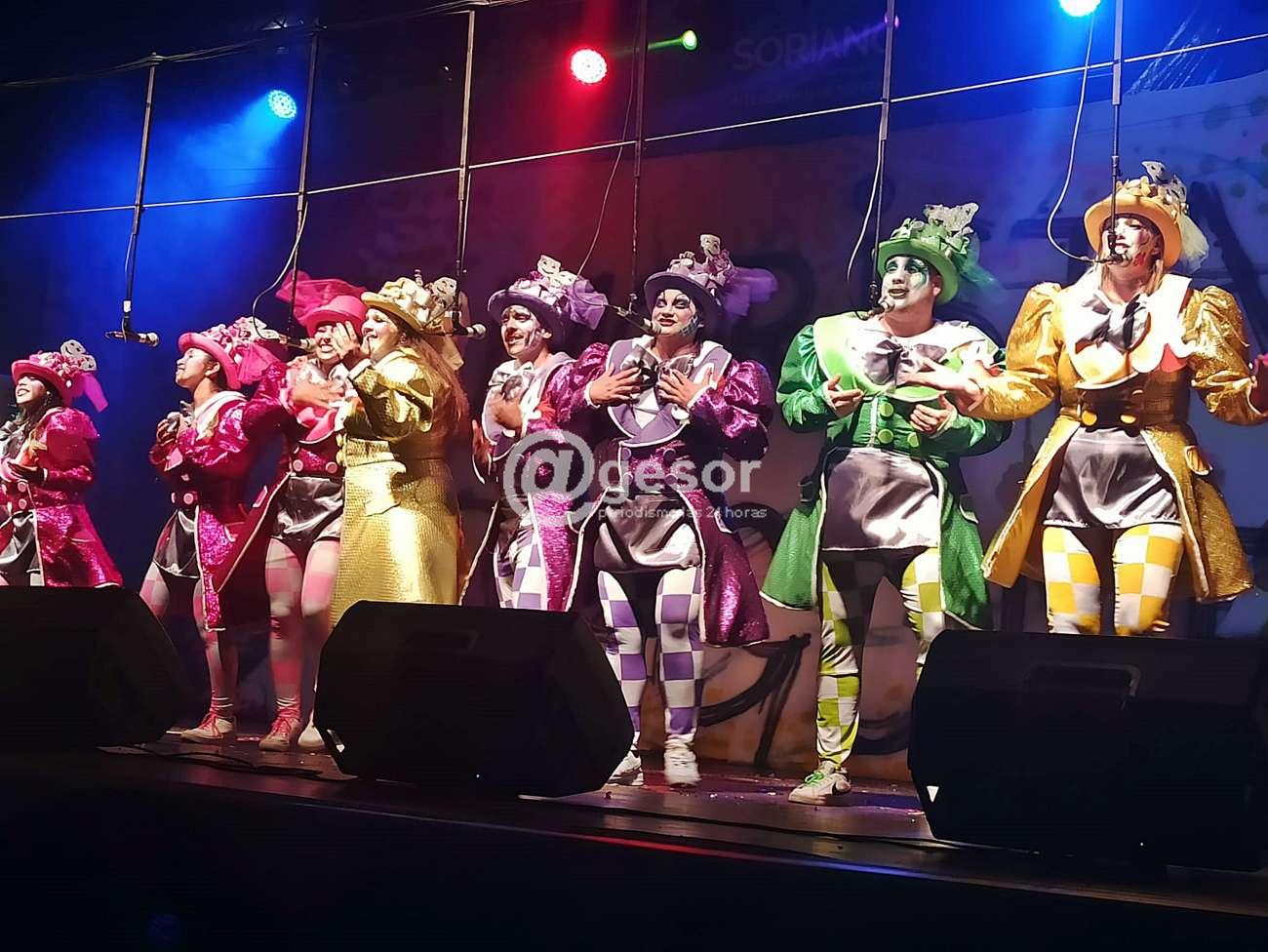 En segundo lugar de la jornada de este lunes en el escenario de Manzana 20, en el cierre de la primera ronda del Carnaval de Soriano, fue el turno de otros debutantes, en este caso, de humoristas Aragones, cuya ficha fue presentada por José María Romero y Silvana Martínez.