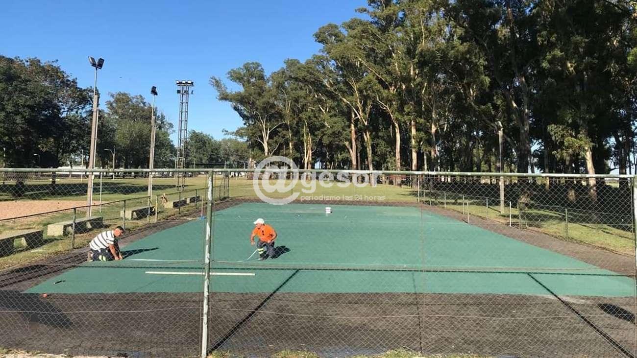 El Municipio de Cardona encara obras de mejoras en la cancha de tenis situada en el parque Cazeaux, con el objetivo de corregir imperfecciones en la superficie de la misma.