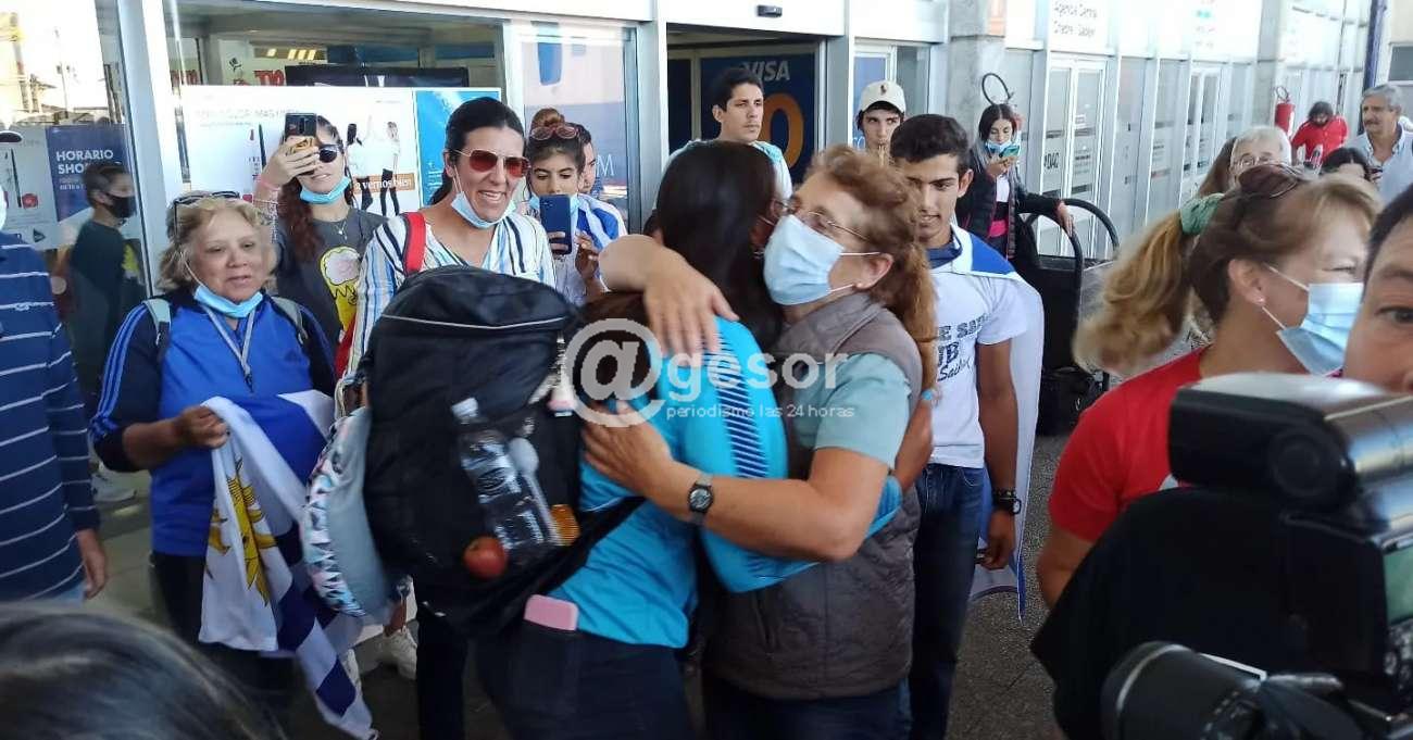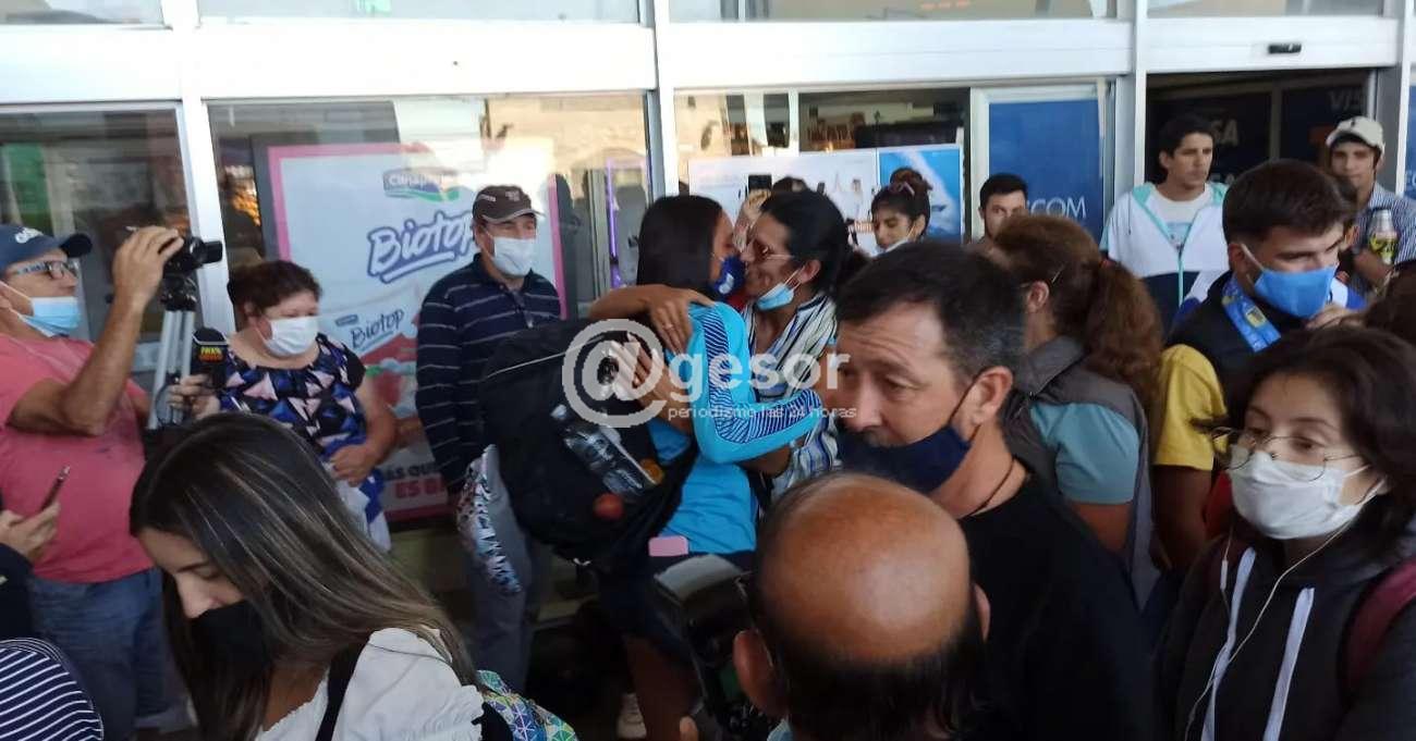 Parte de la delegación costera que vistió y defendió la celeste en el reciente Sudamericano de Remo arribó este lunes a Mercedes, viviéndose momentos de mucha emoción por parte de todos.