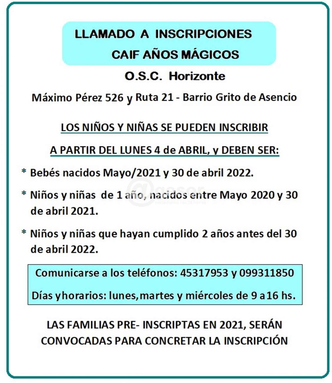 Los niños y niñas se pueden inscribir ya están abiertas las inscripciones y deben ser bebés nacidos en mayo 2021 a abril 2022; niños y niñas de 1 año, nacidos entre mayo 2020 y 30 de abril 2021; niños y niñas que hayan cumplido 2 años antes del 30 de abril 2022.