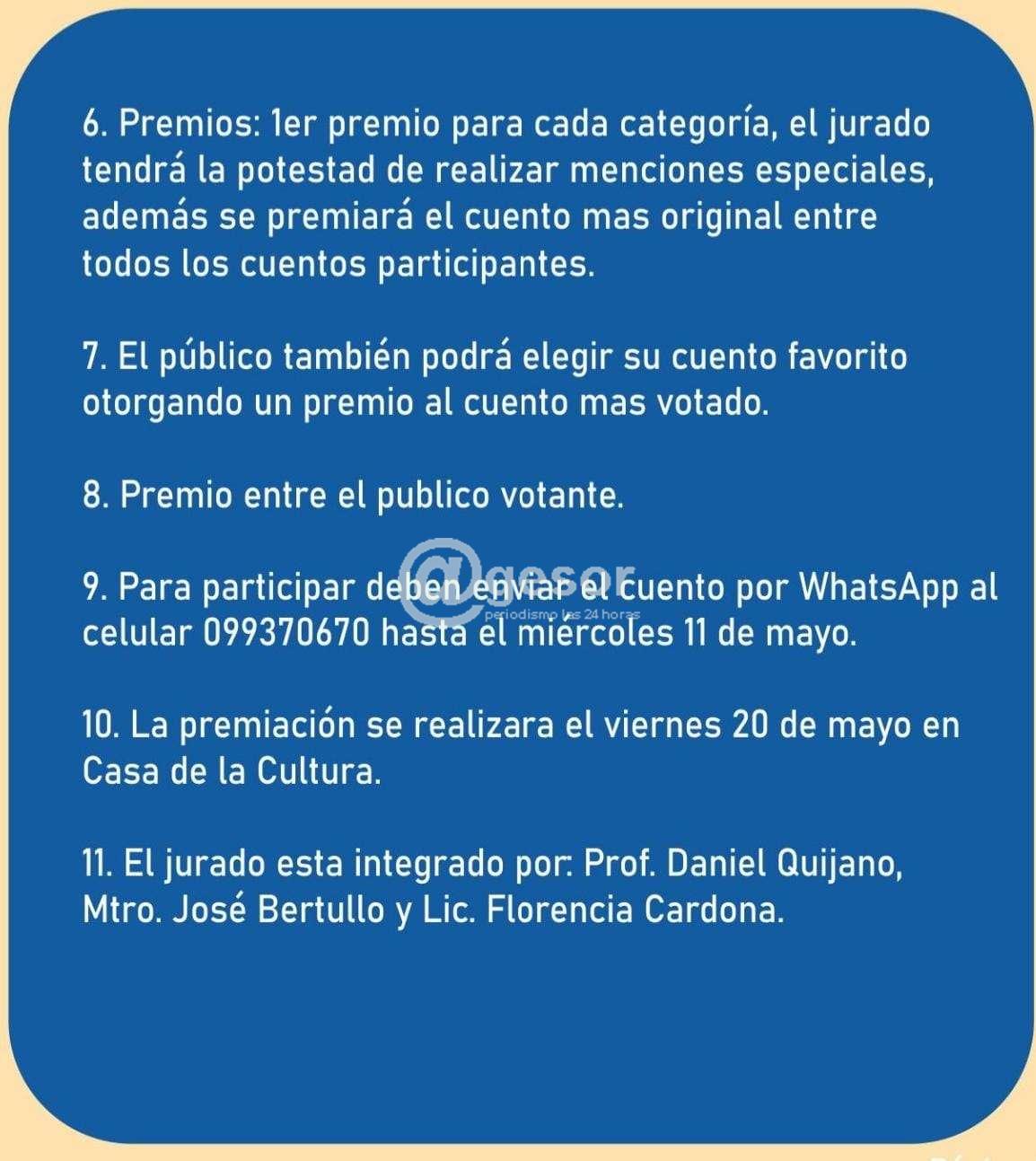 Para participar deben enviar el cuento por WhatsApp al celular 099370670 hasta el miércoles 11 de mayo.