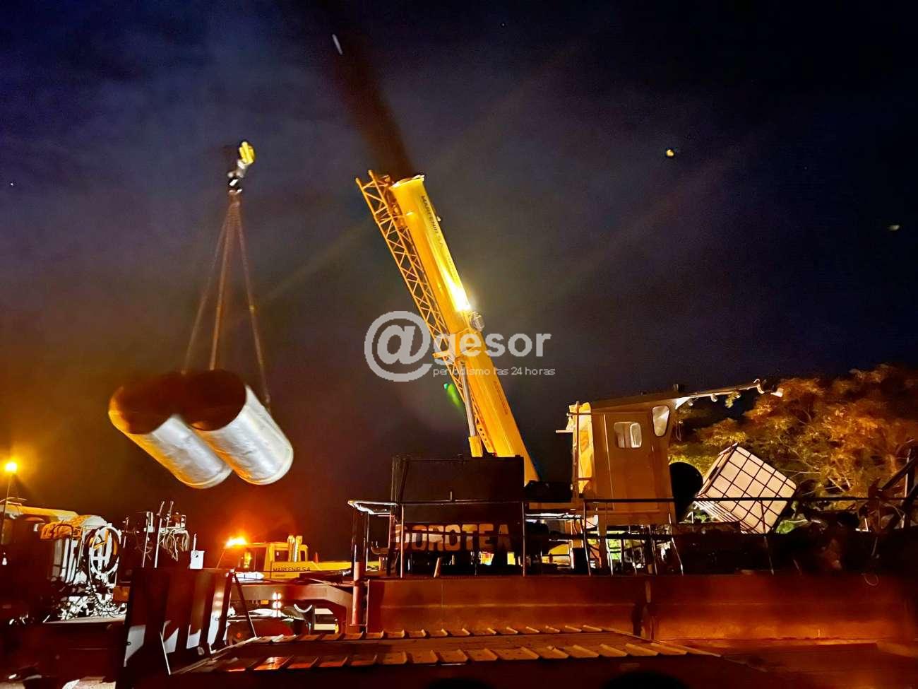 En la noche de este jueves la Intendenta (i) Dra. María Celia Barreiro, acompañada por el Secretario General (i) Gonzalo Castillo y el director de Obras, Pedro Nocetti, estuvieron observando la descarga de embarcación que comenzará a dragar algunos pasos del río Negro.