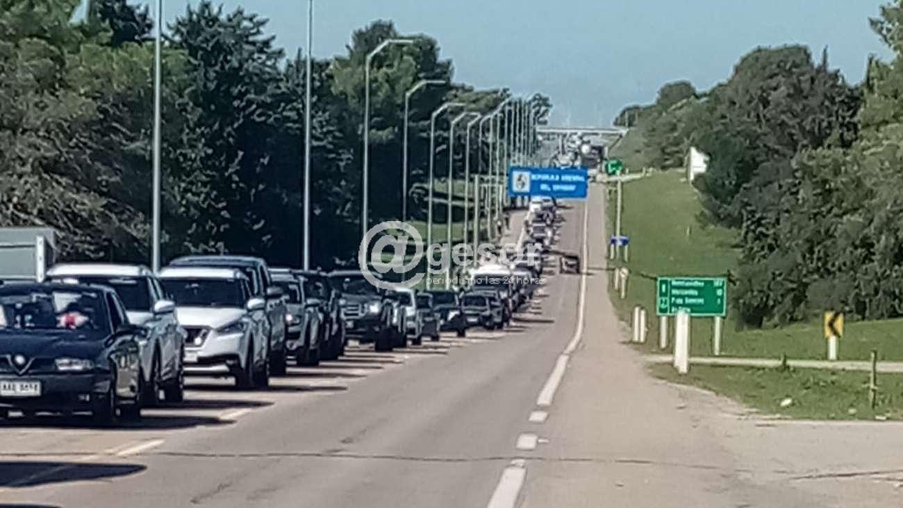 La situación se da producto de las demoras en los trámites migratorios en el puente internacional San Martín, en aquellos vehículos que buscan cruzar a Argentina. La mayoría de los vehículos que pretenden salir del país son uruguayos.
