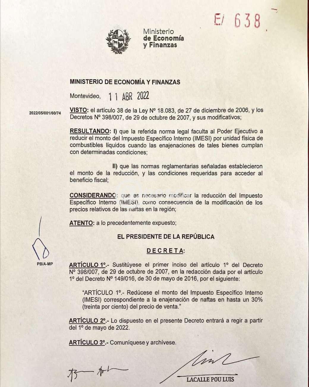 Se firmó un decreto que aumenta el descuento del IMESI del combustible para combatir el contrabando, por la gran diferencia que tiene con Argentina.