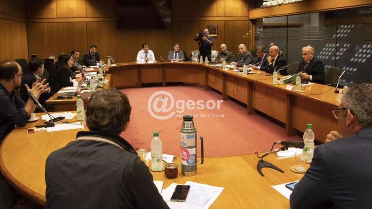El ministro Javier García, el subsecretario Rivera Elgue, el director general de Secretaría Fabián Martínez, el director de Recursos Humanos Gustavo Figueredo y el director de los Servicios Sociales de las Fuerzas Armadas gral. Julio Ifrán concurrieron este miércoles a la Comisión de Legislación del Trabajo y Seguridad Social de la Cámara de Representantes, para tratar un proyecto el referido proyecto de ley.