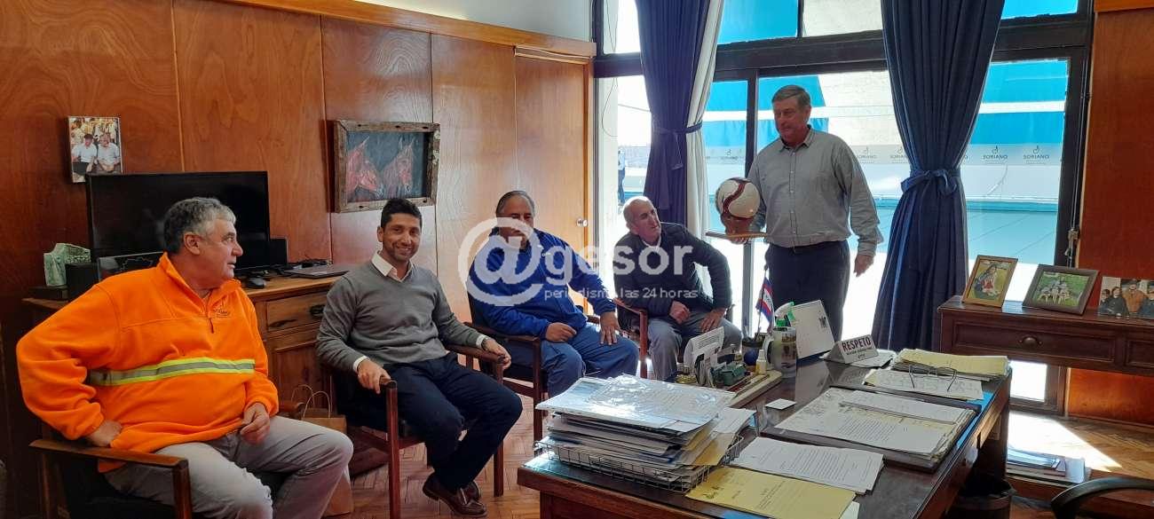 También el jefe comunal recibió a directivos de la Liga Departamental de Fútbol de Soriano, con quienes dialogó sobre las actividades relacionadas al balompié local, oportunidad en la que le fue obsequiada al intendente una pelota oficial de las que se utilizarán en el torneo.