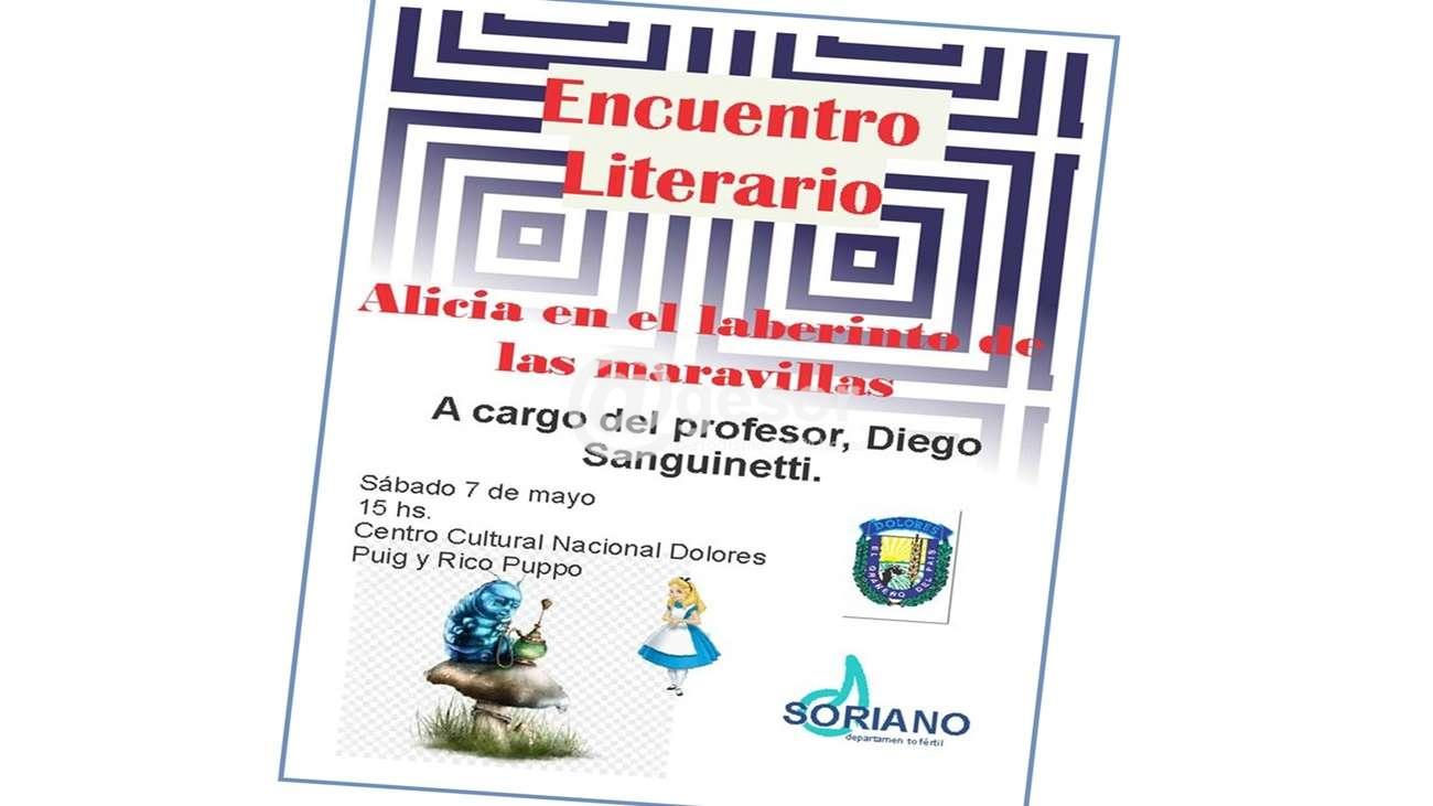 Este sábado 7 de mayo, en el Centro Cultural Nacional Dolores se realizará un Encuentro literario a cargo del prof. Diego Sanguinetti. La actividad comenzará a las 15 horas con el tema “Alicia en el laberinto de las maravillas”.