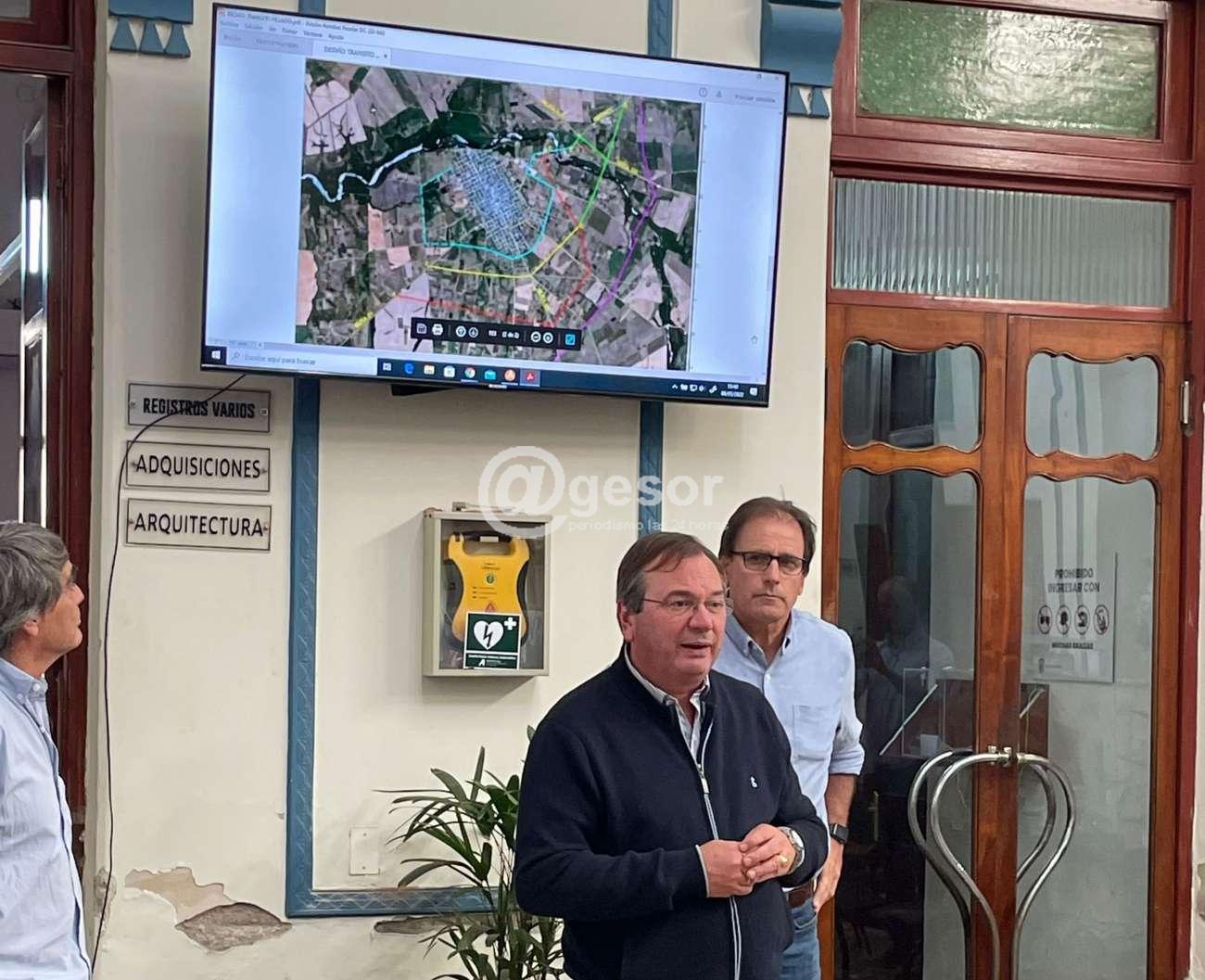 Los Ediles Luciano Andriolo y José Lavista participaron "de la exposición del Ministro de Transporte y Obras Públicas, José Luis Falero y sus asesores, sobre la construcción de otro puente para cruzar el rio San Salvador en Dolores y además de la ejecución de un nuevo desvío para tránsito pesado, más alejado de la planta urbana de la misma ciudad.