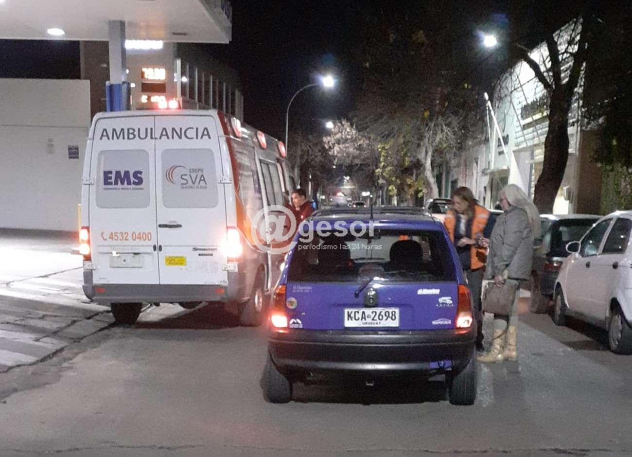 Al llegar al cruce de ambas arterias se produce la colisión que determina que quien iba en la moto cayera al pavimento, debiendo ser atendida en el lugar por ambulancia de EMS SVA.