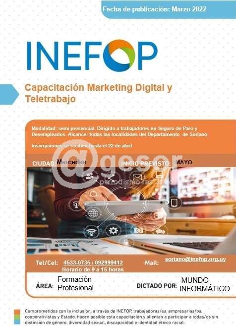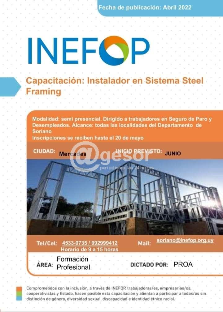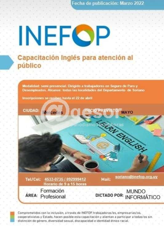 Por más información en: al 092 999 412 WhatsApp o al Tel. 4533 07 35 o través del links: https://oportunidades.inefop.org.uy/index.php/cursos/?yith_wcan=1&filter_alcance=soriano&query_type_alcance=or