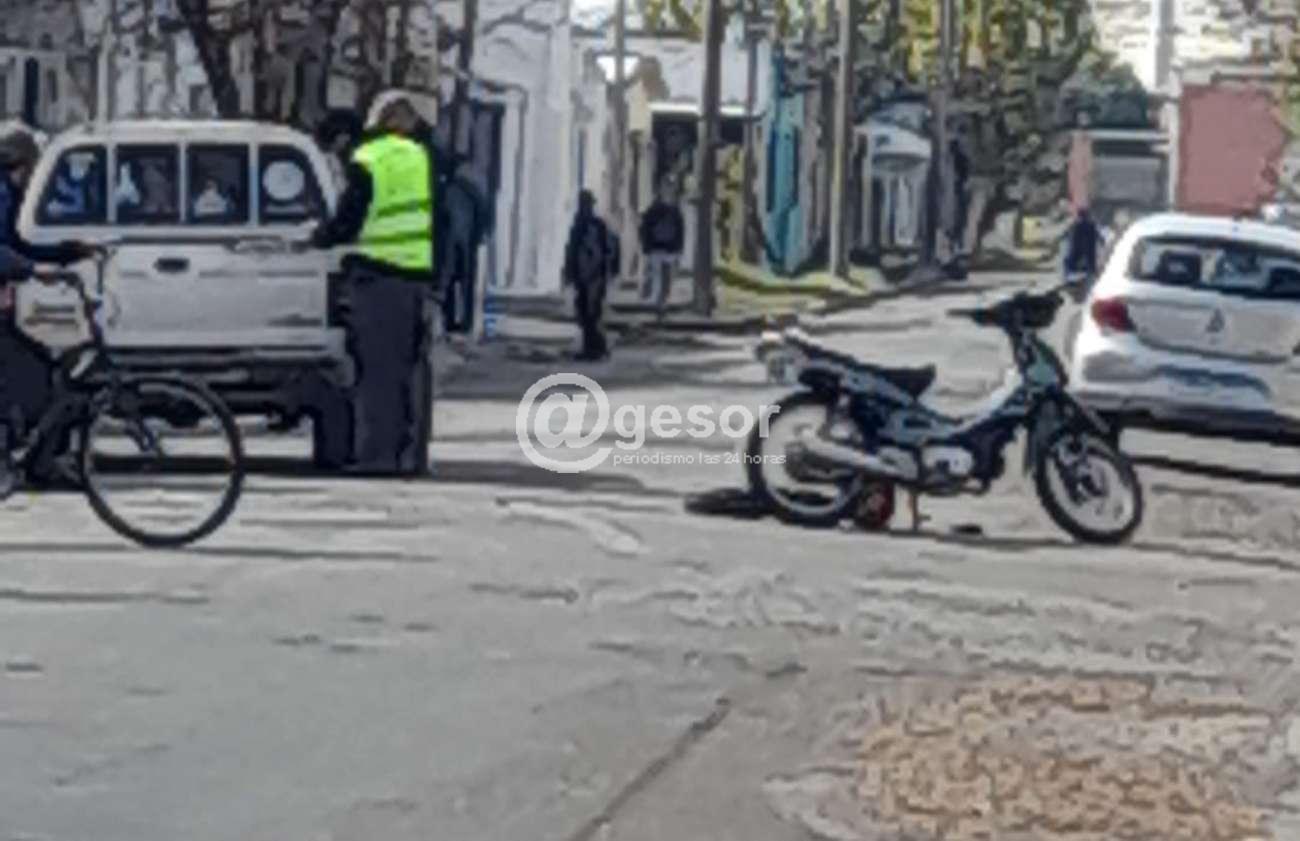 La colisión ocurrió en Dolores, más precisamente en la intersección de Redruello y Prestes, cuando por la primera circulaba la moto guiada por una femenina mayor de edad y al llegar a la esquina colisionó con camioneta que lo hacía por Prestes de Oeste a Este.
