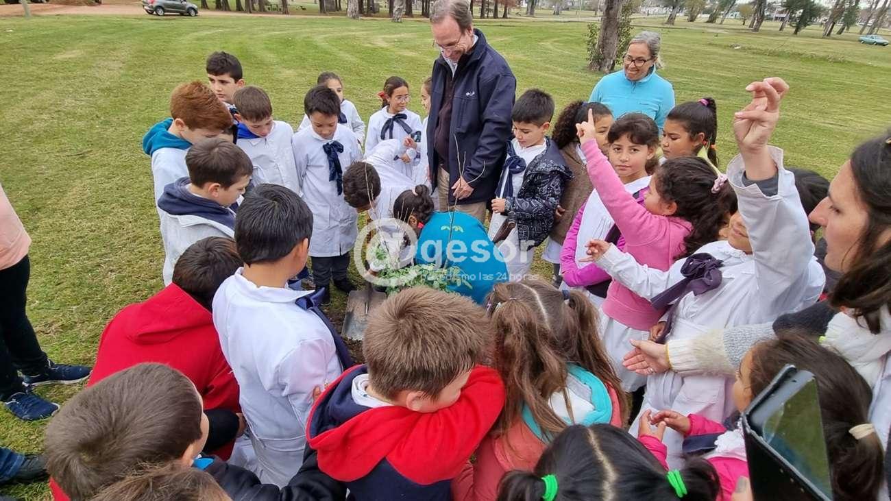 Los 36 ejemplares provenientes del vivero de la Comisión Administradora del Río Uruguay (CARU) fueron plantados por vecinos y por escolares que se inscribieron oportunamente en el marco de una campaña realizada desde la página web de la Intendencia.