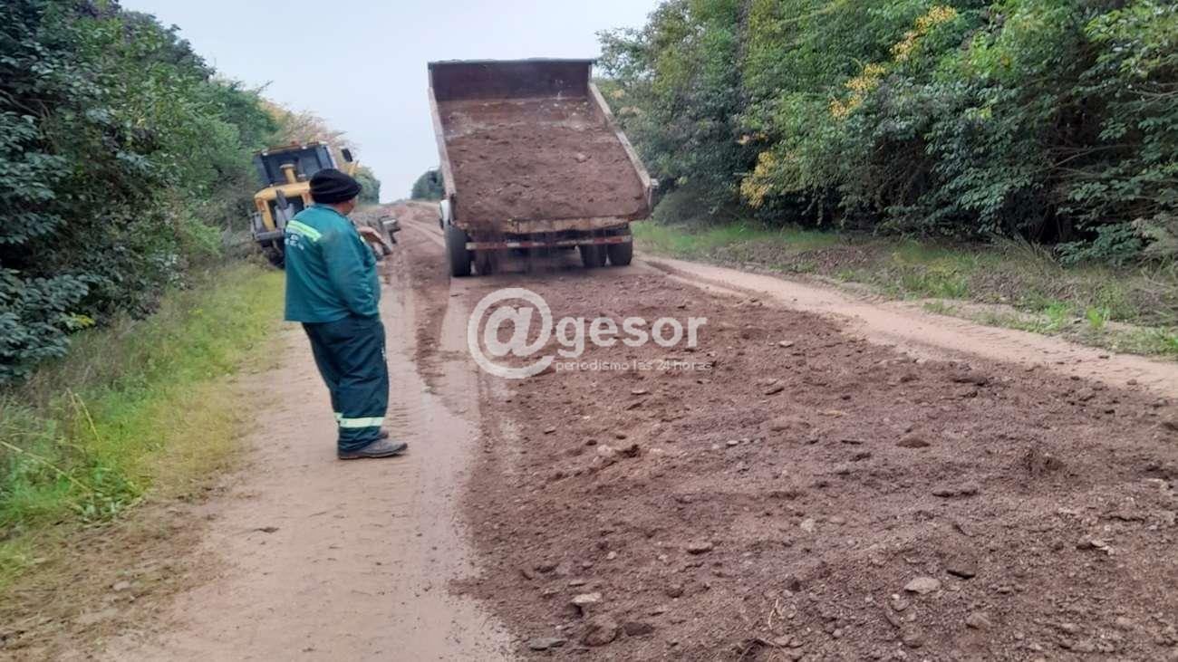 Es en ese sentido que se trabaja en el camino que va desde el establecimiento Las Delicias en ruta 55 hasta Perseverano, interviniendo en un tramo de 9 km. haciendo perfilado con aporte de balasto en la faja de rodaje.