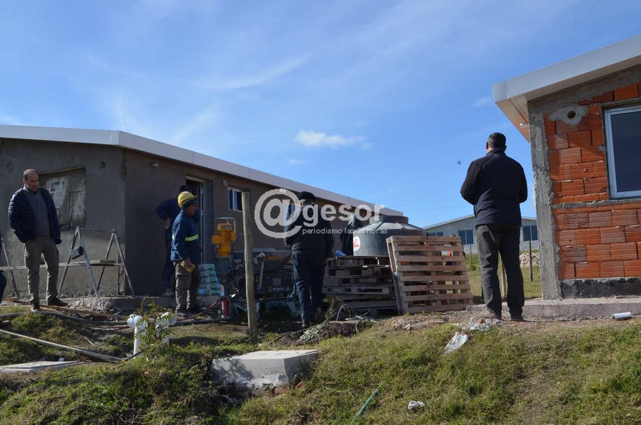 Veintiuna familias integrantes integrantes del segundo plan de realojos ya están próximas a culminar las obras en sus casas. Este viernes el Intendente de Soriano, Guillermo Besozzi, acompañado de arquitectos de la empresa responsable de la obra y de la intendencia, junto con otras autoridades municipales visitaron la obra y dialogaron con varios integrantes de estas familias que están abocadas a las obras de terminación de sus casas. Como hemos informado esta importante obra encarada por la Intendencia de Soriano y el Ministerio de Vivienda tiene como objetivo la relocalización de 110 familias que actualmente viven en asentamientos precarios. La obra fue iniciada por una empresa particular con el acompañamiento de la Intendencia y el Ministerio de Vivienda y tiene un componente extra como lo es la auto construcción, donde los integrantes de las familias que ocuparán las casa trabajan en ellas en el revoque y terminación. Además de las habitaciones que componen la construcción cada familia tendrá un predio contiguo donde podrán, en el futuro anexar otra construcción o un espacio considerable donde realizar una quinta.