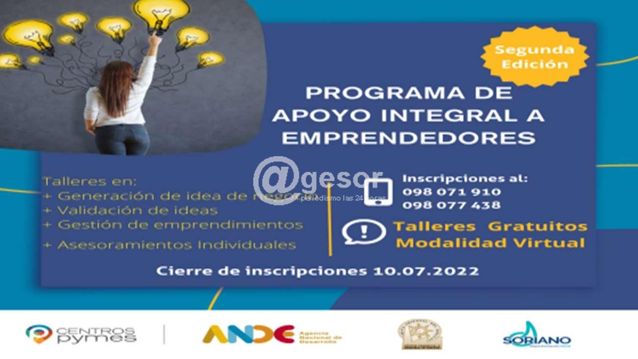 Pre inscripciones para el PROGRAMA DE ATENCIÓN INTEGRAL A EMPRENDEDORES del Centro PYME de Soriano. Destinados a emprendedores que tengan la idea de comenzar un emprendimiento, quienes ya tengan emprendimiento en ejecución o quienes quieran profesionalizar la gestión de su emprendimiento.