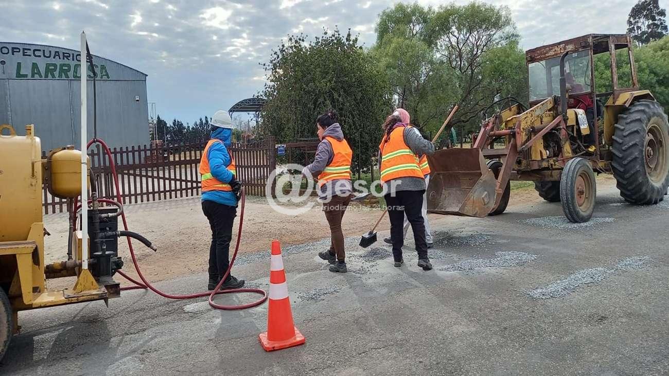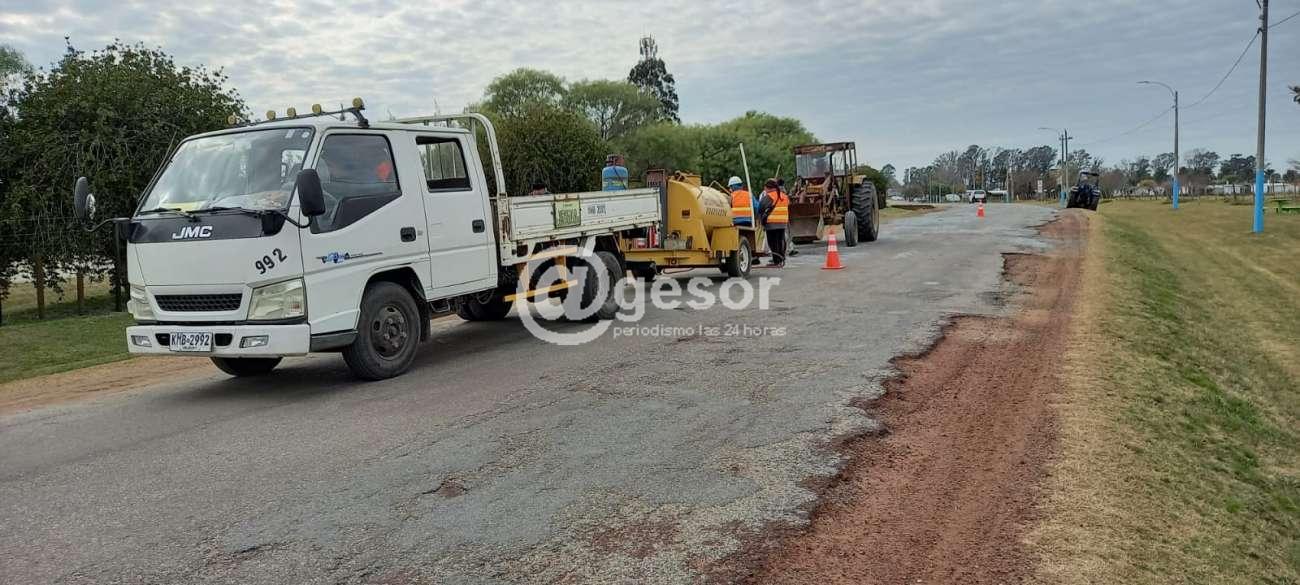 Se trata de un equipo que realiza tareas de bacheo con asfalto en caliente y gravilla, la que actualmente cumple trabajos en la localidad de Palmitas.