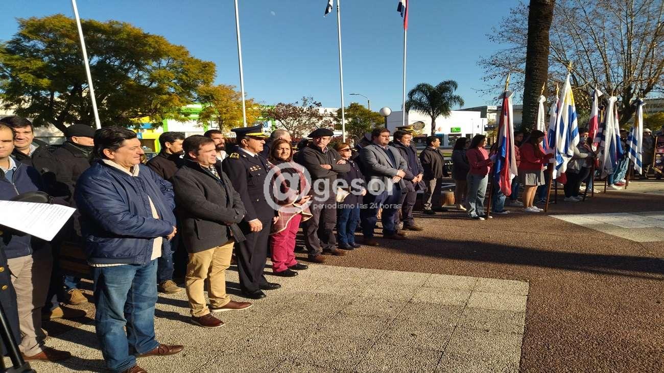 Autoridades departamentales, encabezadas por el Intendente Guillermo Besozzi, los tres diputados por el departamento, María Fajardo,  Enzo Malán  y MartínMelazzi, el presidente de la Junta Departamental de Soriano, Gastón  Formiliano, el Alcalde de Dolores, Joaquín Gómez, ediles, concejales, directores municipales , entre otros participaron de este acto que tuvo como único orador al  Jefe de Policía de Soriano Crio. May. (r) William Martínez, dando paso luego a la colocación de una ofrenda floral al pie del monumento que recuerda la Acción de Dolores.