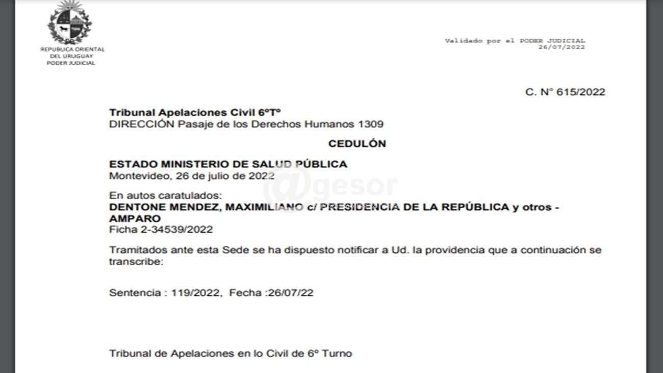 El Tribunal de Apelaciones en lo Civil de 6o. Turno revocó la sentencia del juez Alejandro Recarey que había determinado el fin de la vacunación contra el Covid-19 a niños. En el documento firmado por las Dras. Marta Gómez Haedo Alonso, Martha Alvares De Simas Grimón, Mónica Bórtoli Porro contiene un duro cuestionamiento al accionar del Juez Alejandro Recarey quien “debió excusarse de inmediato en mérito de haber brindado su opinión