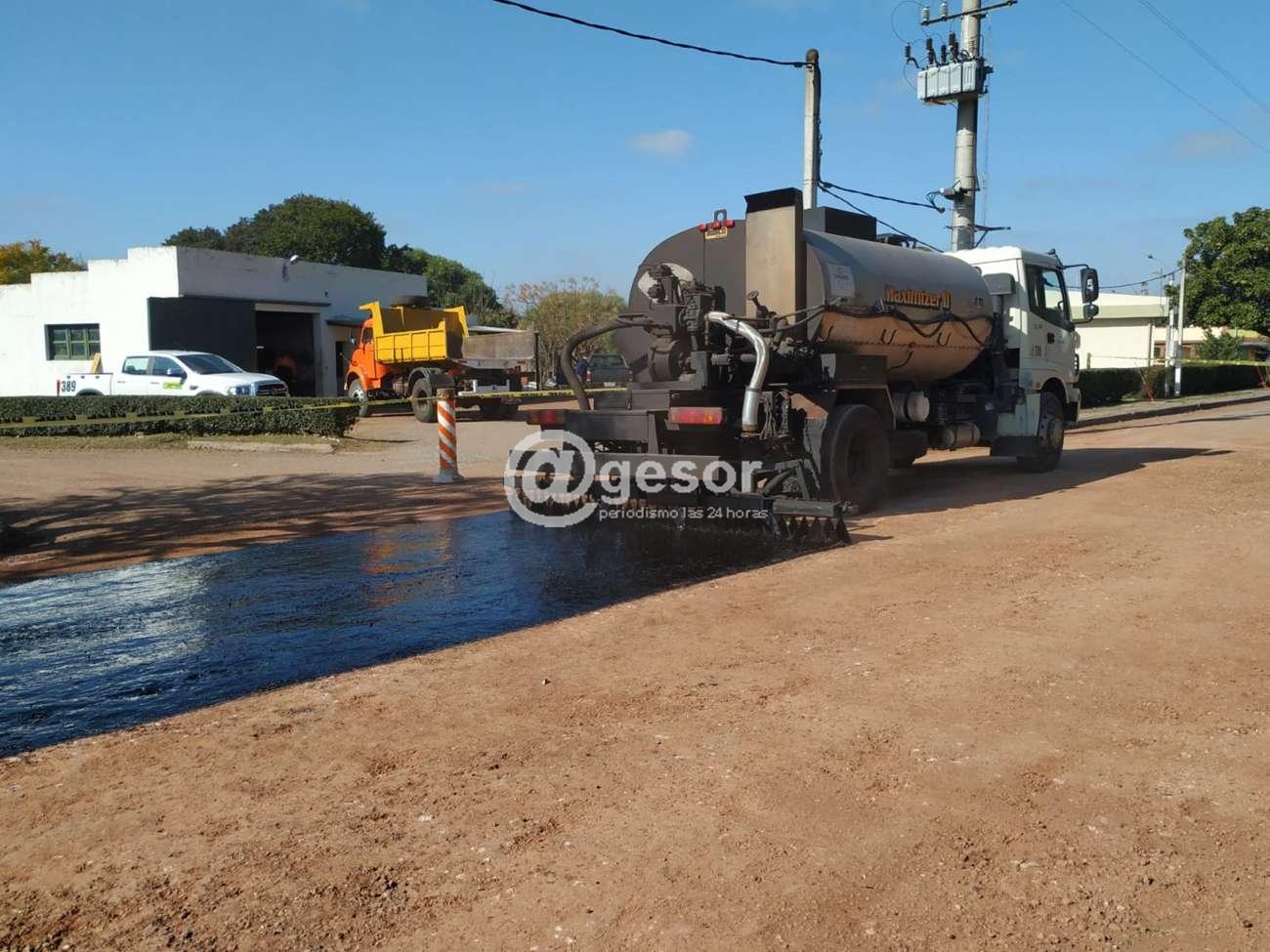Paralelamente en otras vías de tránsito se realiza la preparación de base mediante el escarificado, el aporte de material granular, conformación y la compactación, para la posterior ejecución de los riegos bituminosos (riego de imprimación y dos riegos con agregados pétreos).