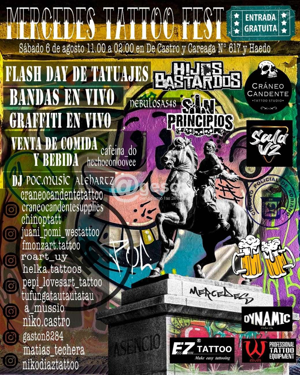 Este sábado 6 de agosto la capital sorianense podrá disfrutar de un evento que para los amantes del tatto (tatuaje) concita la atención y el disfrute, denominado MERCEDES TATTOO FEST que estará desarrollándose en sede del Círculo Policial de Mercedes en de Castro y Careaga 617 casi Haedo, desde las 11.00 de la mañana del sábado hasta las 2.00 de la madrugada del domingo con entrada gratuita para todos aquellos que deseen concurrir.